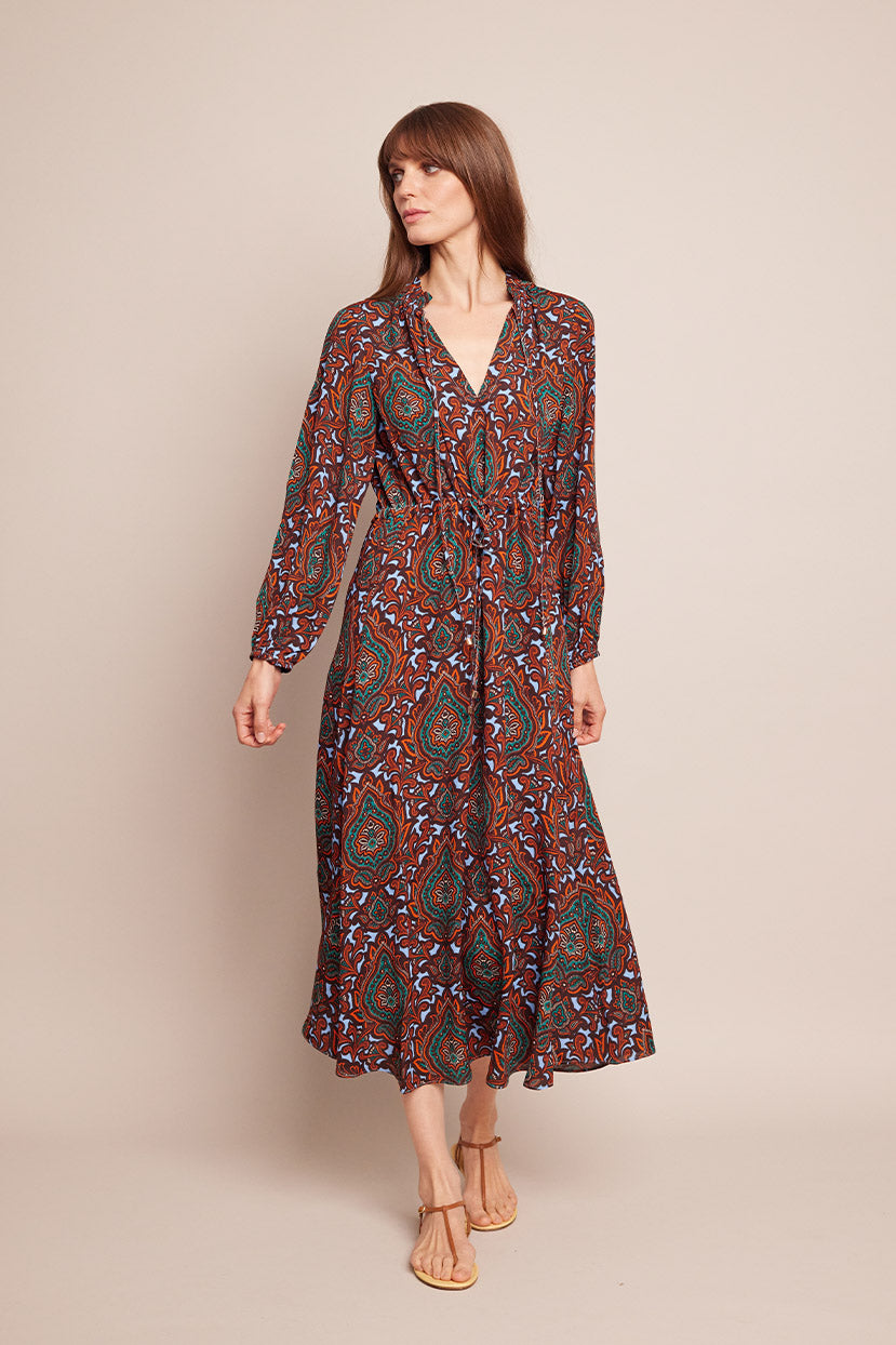 The Berkshire Dress is a town-to-country classic. The allover tile print projects a casual glam worthy of its mountain namesake, while the tie-neck detail offers a subtle shot of urban sophistication. This updated spin on our beloved Tanglewood Dress features a tunneled waist with self-ties for an adjustable, ultra flattering fit.