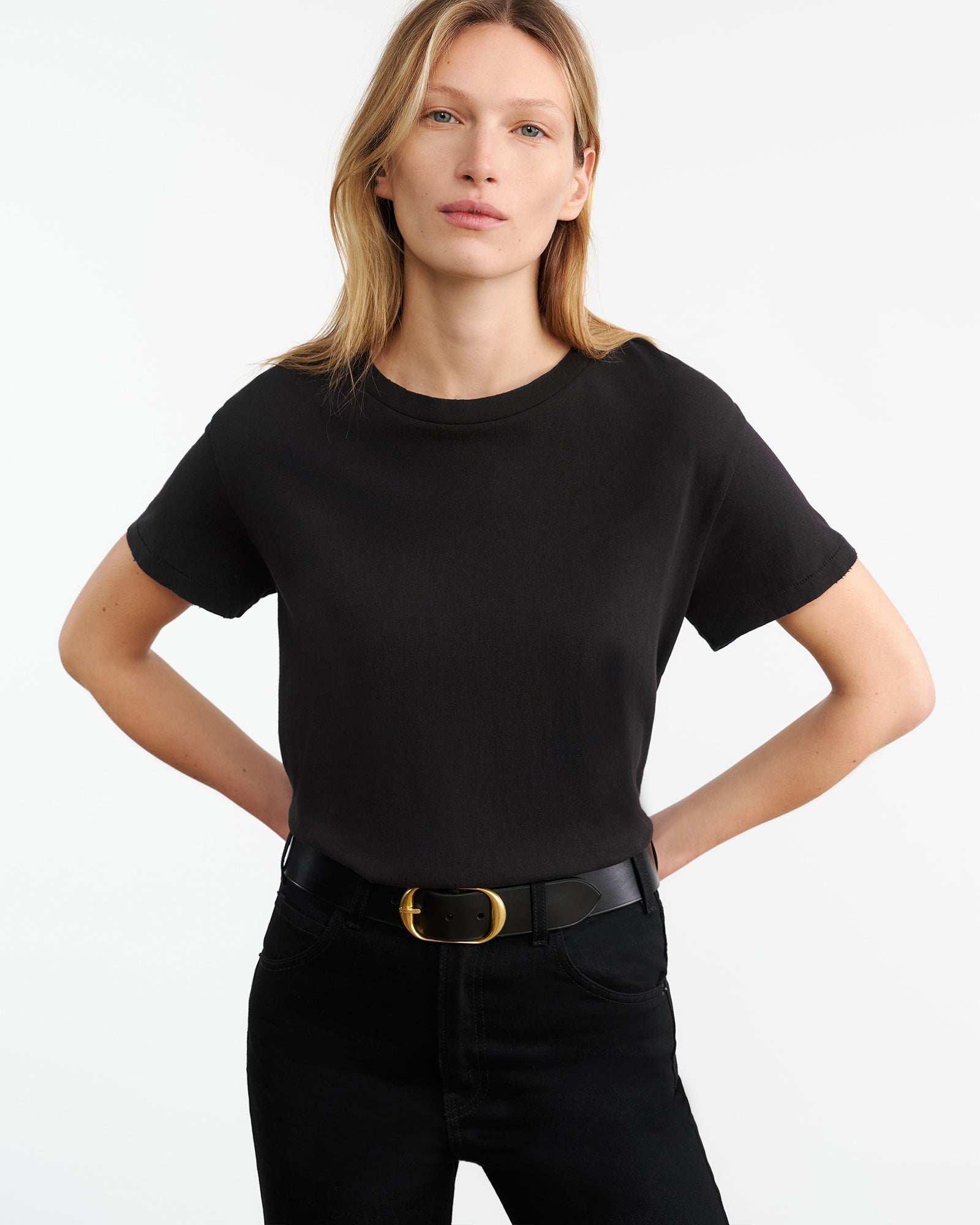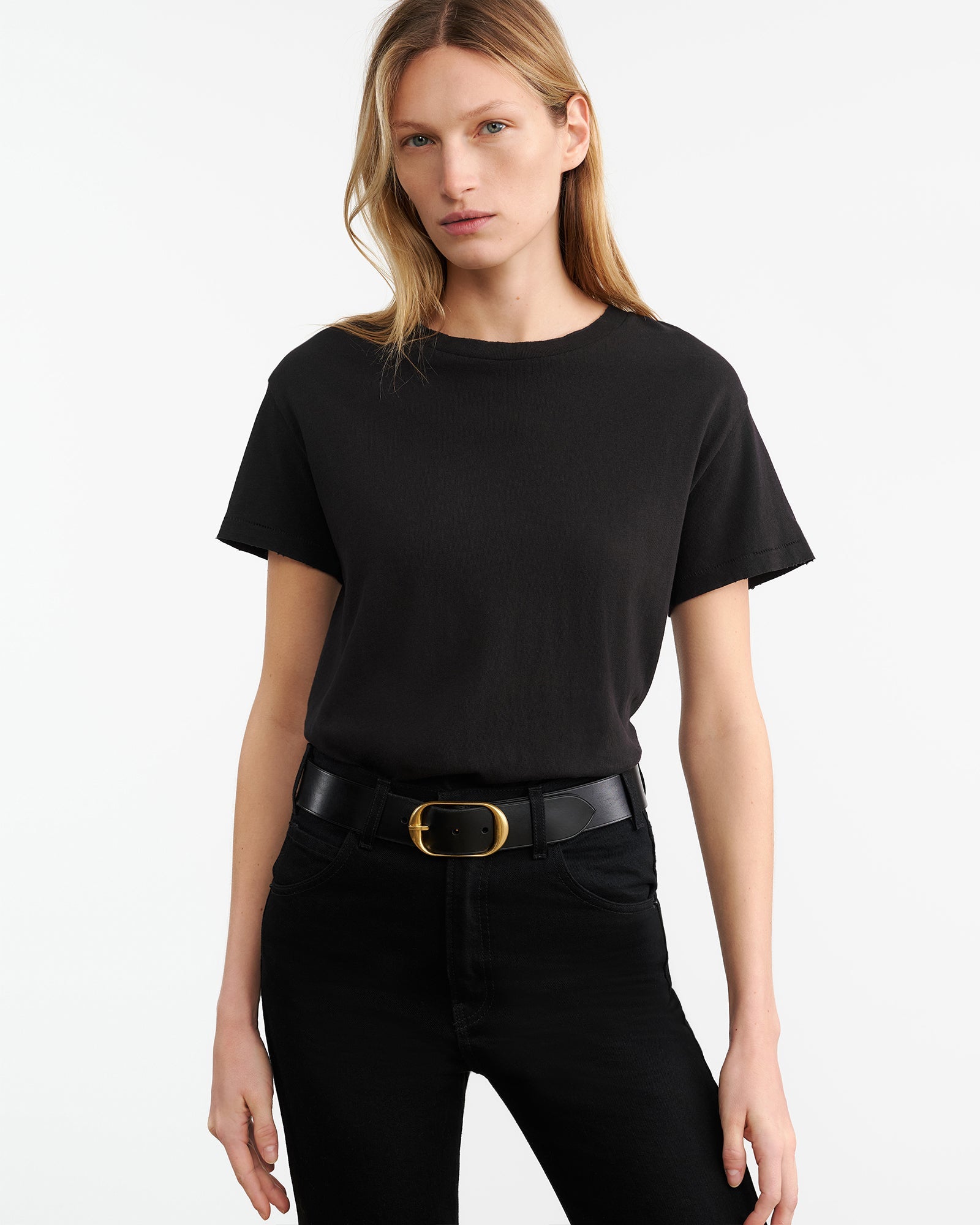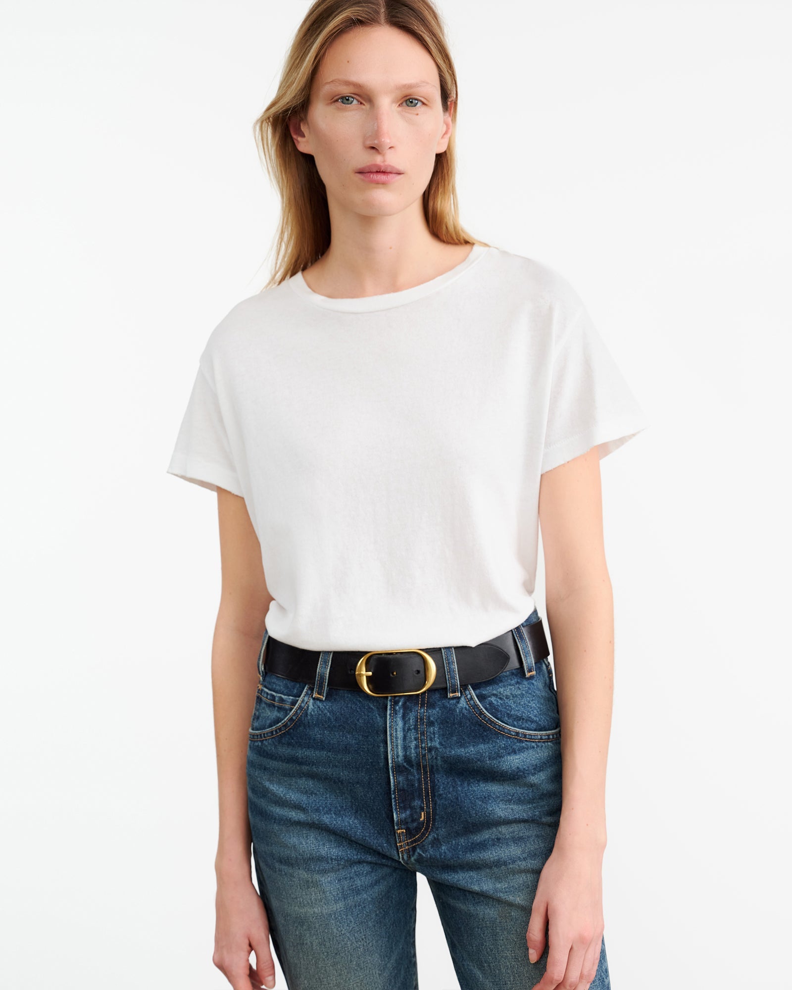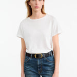 The Nili Lotan Brady Tee is a wardrobe essential for every woman. Update your basics with this subtlety distressed, timeless tee, that can be effortlessly paired with any of your favorite pieces.