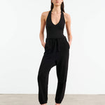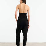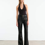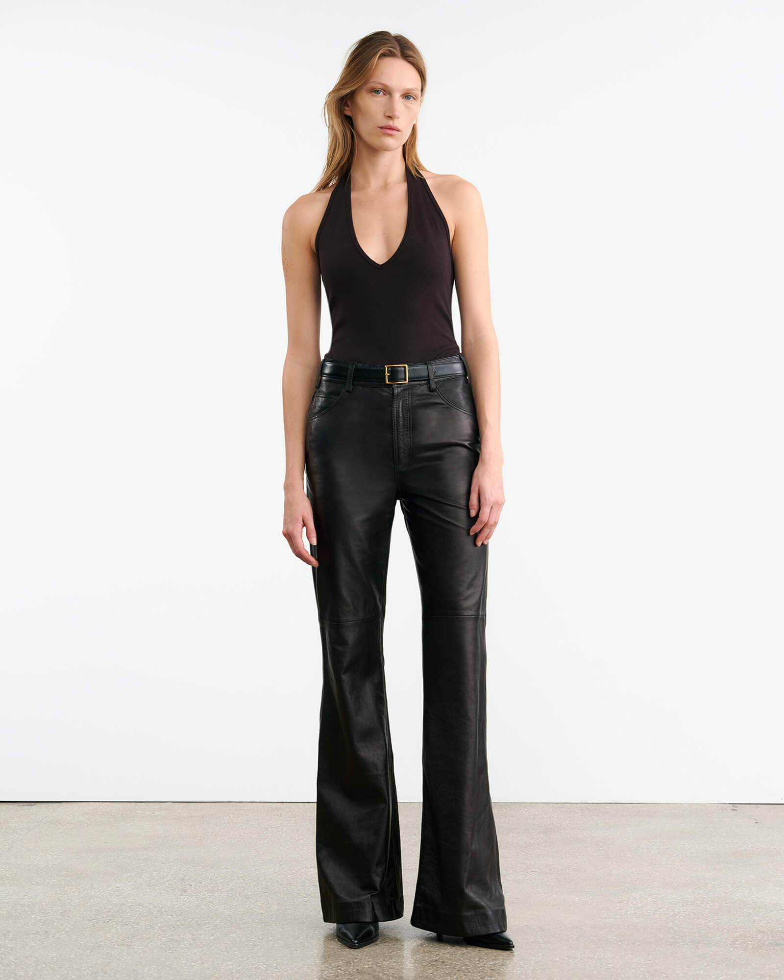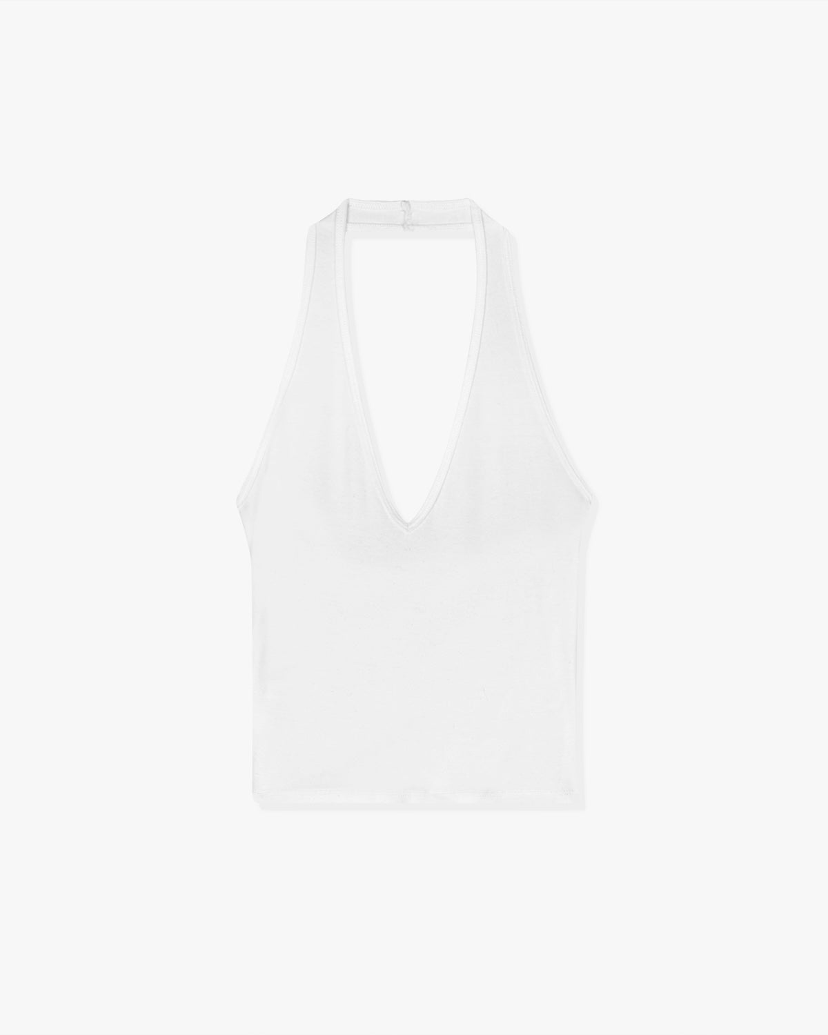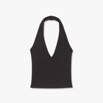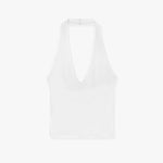 Slim ribbed halter top in American cotton. V neck. Binding at neck and arm hole. Short body.