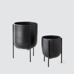 Crafted from burnished clay and finished with a black steel base, these sleek planters double as sculptural art pieces. Their clean, modern lines instantly upgrade any corner’s botanical game. Available in two colors: terracotta and matte black.