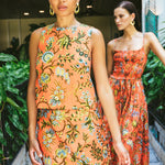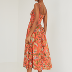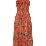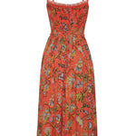 • Midi length dress with smocked bodice and adjustable spaghetti straps
