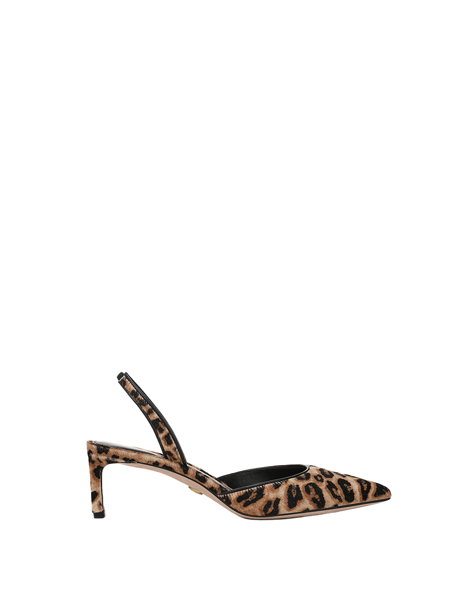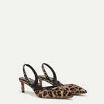 The classic slingback pump, perfected. Expertly crafted from soft suede, this timeless style features a mid-height heel, a pointed toe, and an elasticized strap for comfort. In trendy leopard print, these kitten heels are great for work and nights out alike.