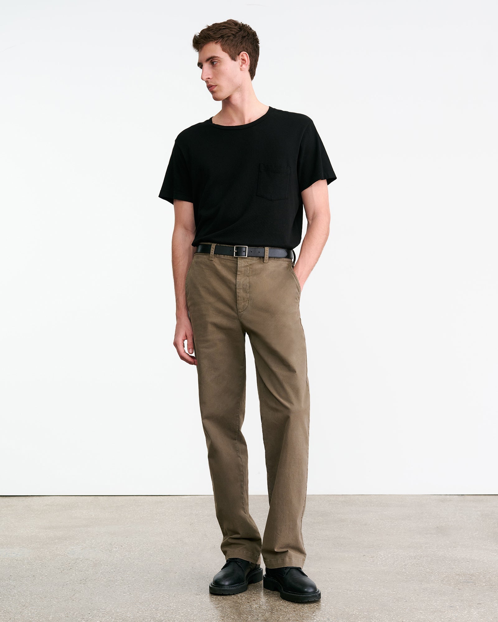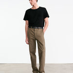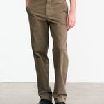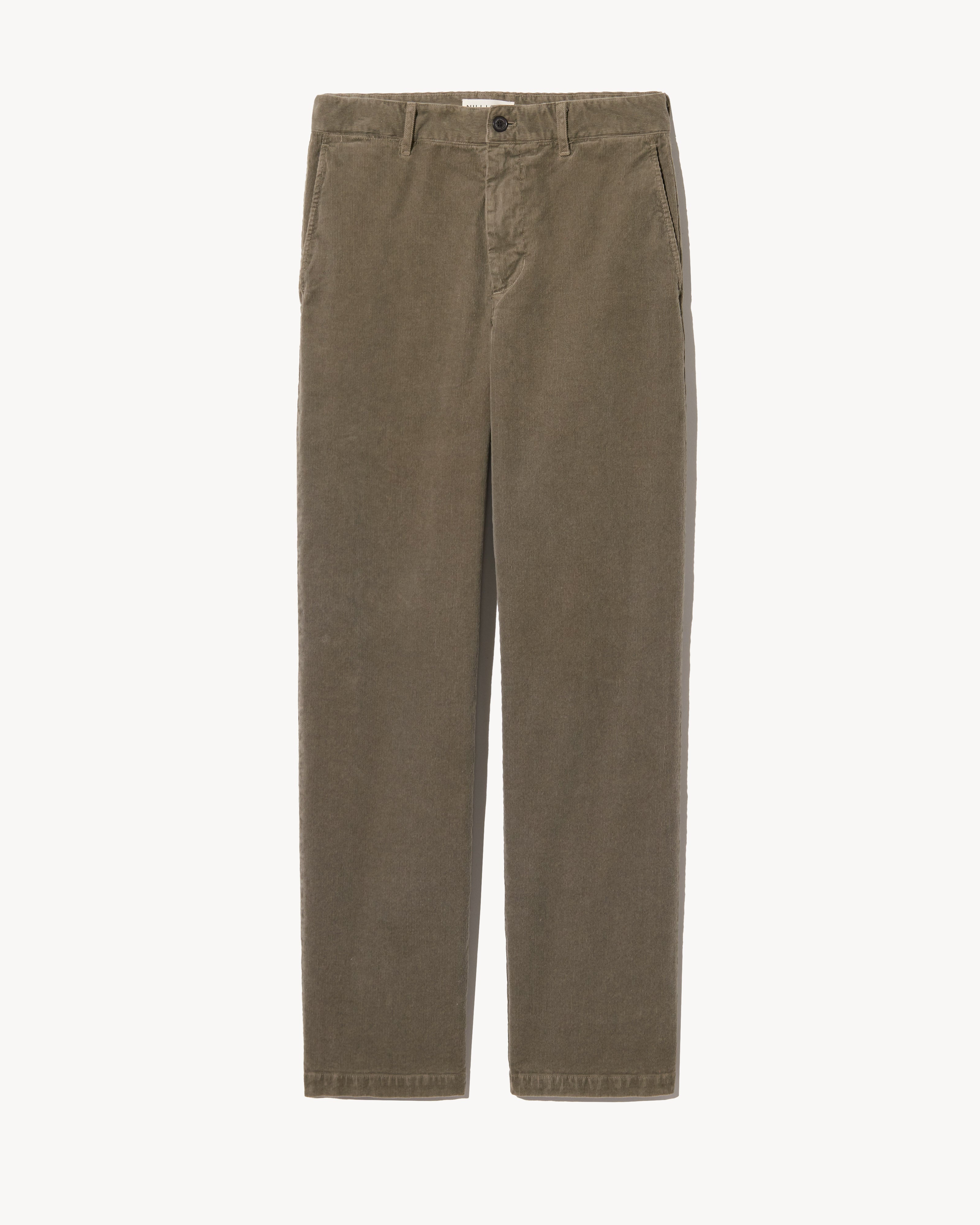 Mid-rise relaxed slightly wide leg pant in corduroy. Side slash pocket. Back welt pockets. Zip fly. Button closure. Belt loops.