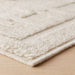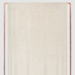 Soft serenity is the middle name of this elegant, hand-knotted area rug. Infusing traditional architectural elements with the softness of cream wool, each piece combines a lovely ecru background with stripes of plush, textured wool to make any room feel a little more inviting.