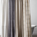 Each shower curtain is handcrafted by a group of 32 master weavers in Kannur, India. From start-to-finish, each one takes almost a day to complete. All made in a fair trade environment.