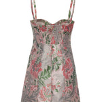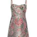• Bustier mini dress in vintage floral jacquard designed for a fitted look at bodice with a slightly a-line skirt