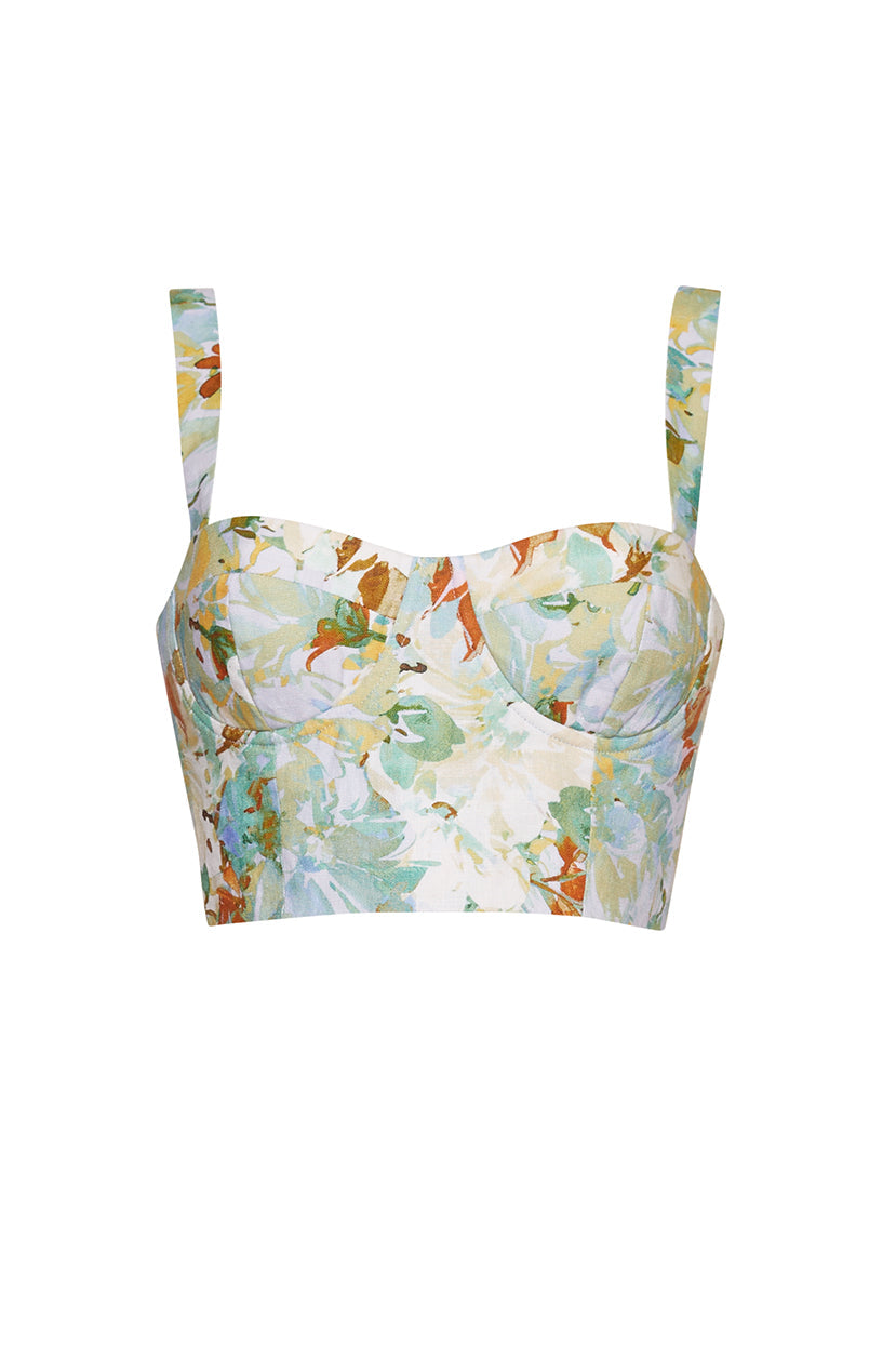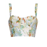 The Claudine Top was designed as an easy compliment to denim and matching printed looks. An extremely flattering and feminine corset crop top, the Claudine is designed in linen and pairs effortlessly with the matching Josephine Pant. The elastic at the back of the straps and fitted bodice allow for a comfortable fit and no-fuss pretty detail.