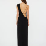 Fine Italian jersey is anchored by rouleau ties in this artisanal bias draped dress. A delicate interplay of rouleau ties and fine straps suspends the gown from a single shoulder. Finished with an open-back detail.