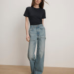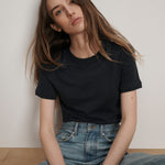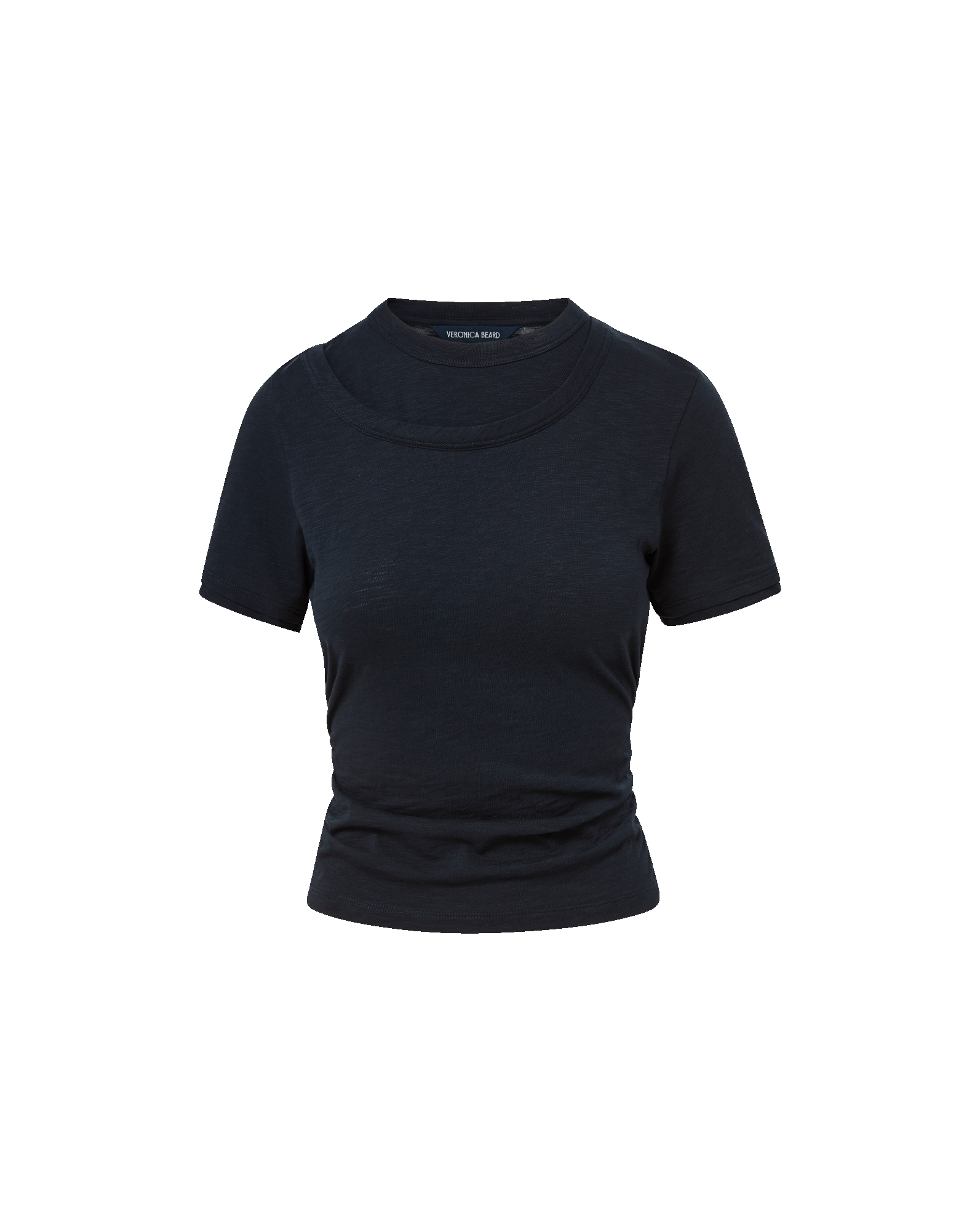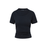 The classic tee, reimagined with thoughtful details. Crafted from soft cotton slub jersey, the Damian features a flattering fitted silhouette with side ruching to define the waist. A mock double crewneck collar and layered short sleeves finish the look, adding subtle dimension. Wear it with your favorite denim for everyday ease, or layer under a blazer for a polished look.
