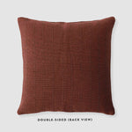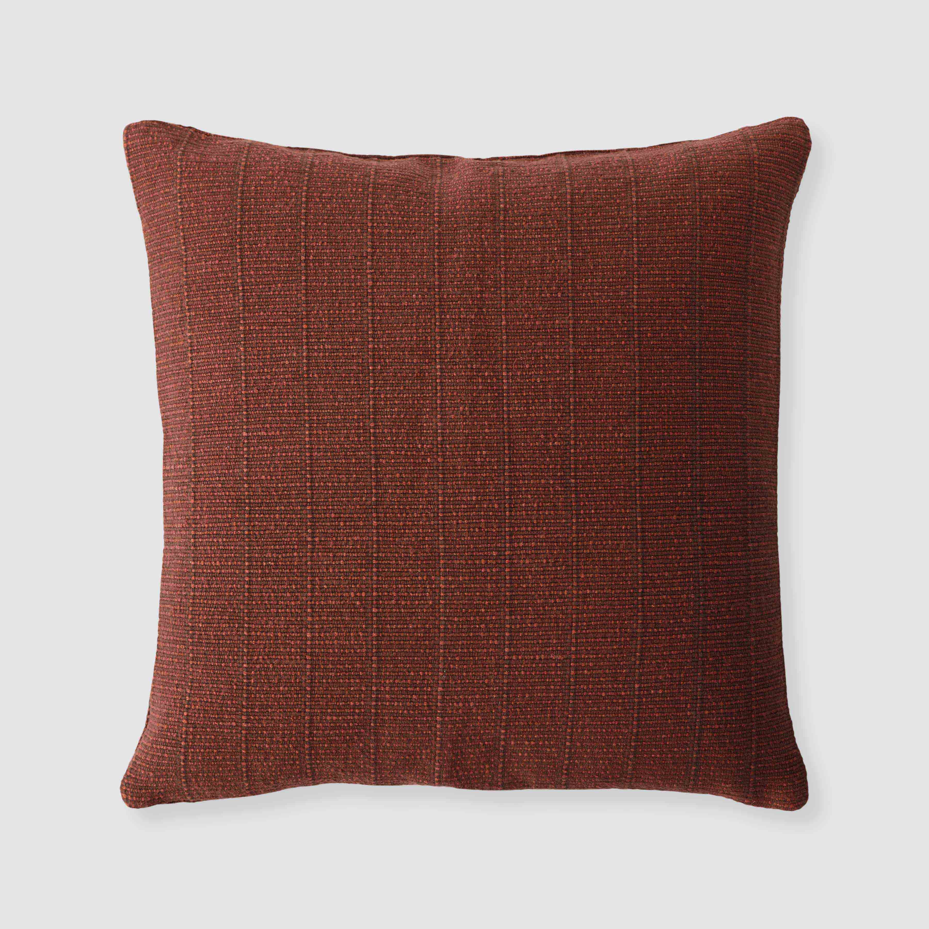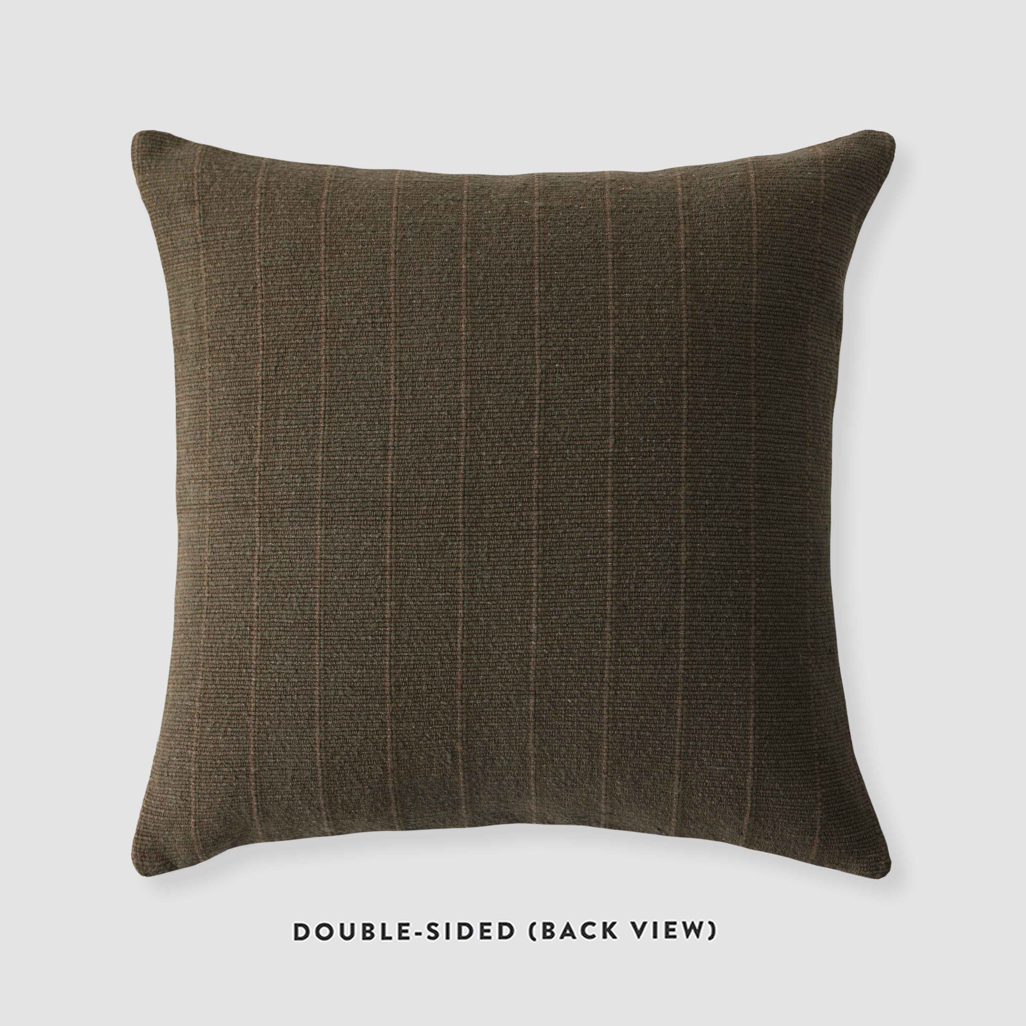 Handwoven in India from a blend of natural linen and cotton, this pillow is a study in understated texture and subtle sophistication. Its tone-on-tone geometric pattern, created by alternating yarns in softly varied shades, adds gentle depth without overpowering, making it the perfect mixer pillow alongside bolder statement pillows.