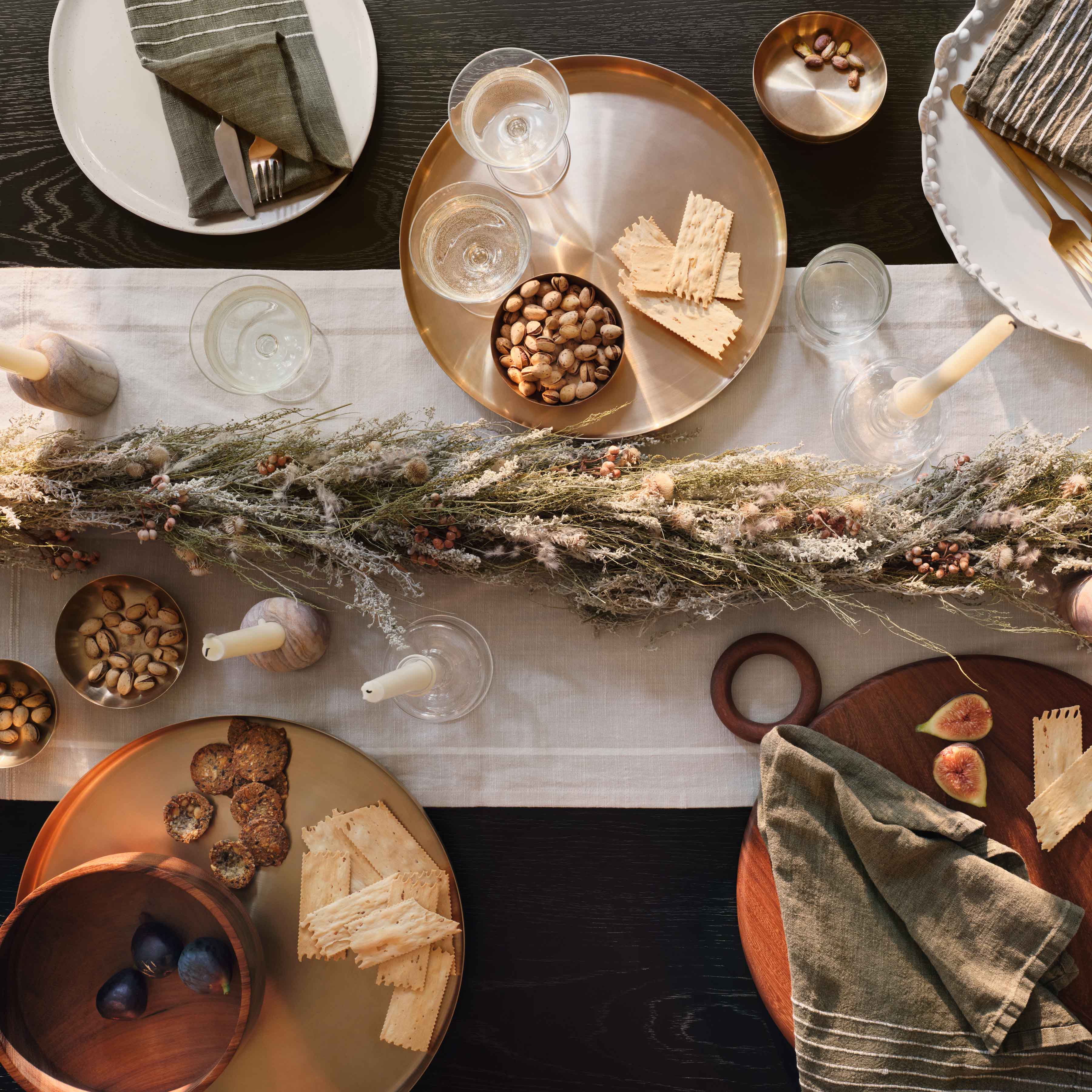Inspired by the traditional thali dishes used throughout Indian cuisine, this set of bronze serving bowls add a hint of luxe to your cocktail or dinner party. Handcrafted with a food-safe bronze alloy, these little guys make the perfect container for small snacks like almonds or olives. Or, use them as catch-alls for odds and ends around the house.