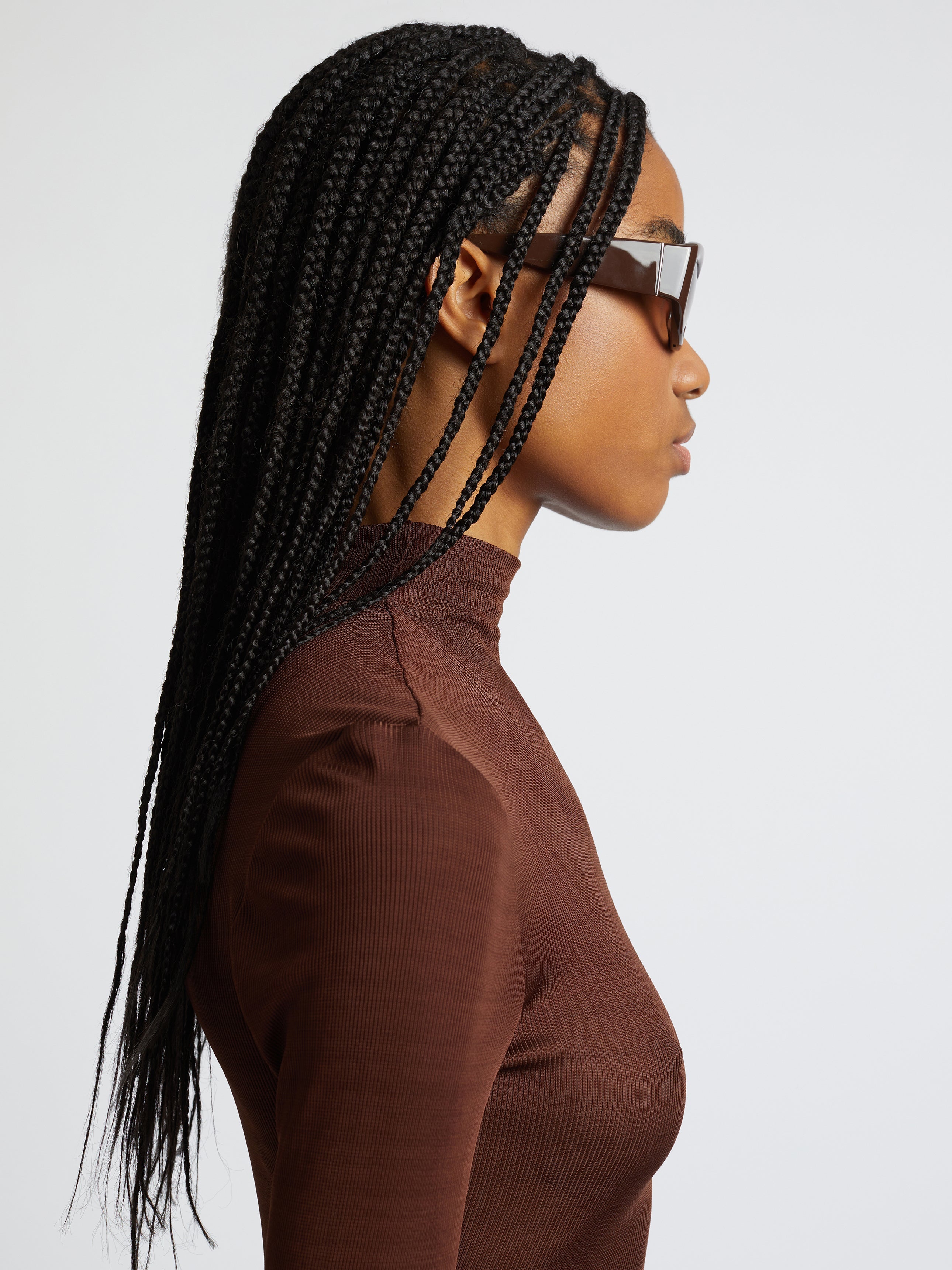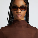 The signature Davies 99 sunglasses have a sleek, high-shine acetate frame with unique, cutaway lenses. The soft squared shape is both modern and universally flattering.