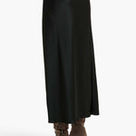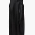 A fluid midi skirt in luminous satin that is cut on the bias for a body-skimming fit. Draped detail at folded front. Concealed zipper closure at left side.