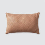 Woven from vegetable-tanned leather from Kolkata, this small lumbar pillow instantly elevates the look of any pillow combination with its warm tan hue and luxe texture. With its dimension and detail, it makes for a special accent on any couch or corner nook.