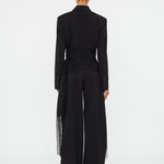Tailored with precision, the Didion Trouser is cut to a wide-leg silhouette in wool suiting. Finished with tonal macramé panels unraveling into hand-knotted fringe, the style merges sharp tailoring with textural fluidity.