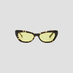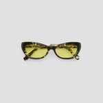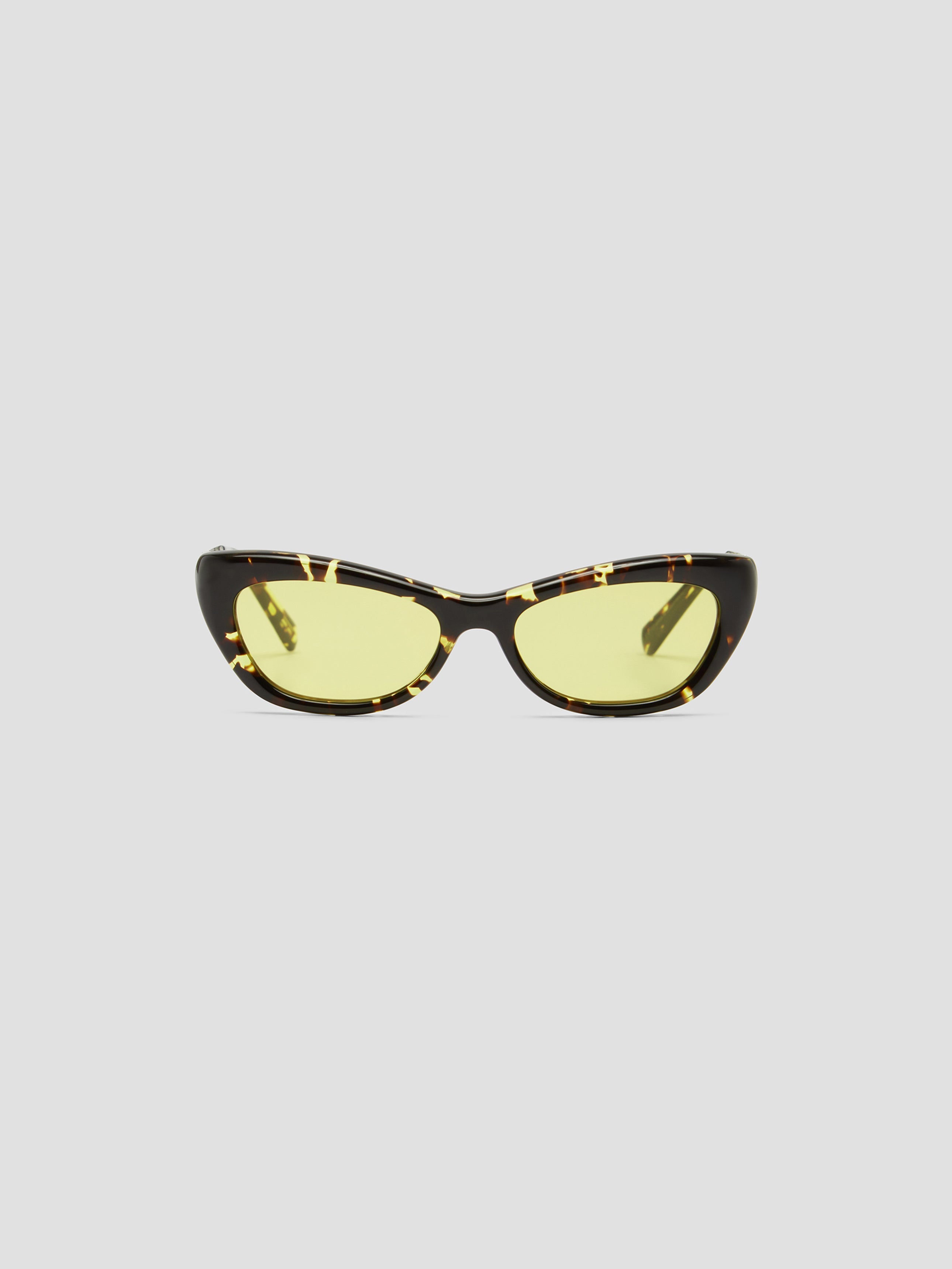 The Dillon 95 sunglasses have a sleek, high-shine acetate frame with unique, cutaway features, exposing the metal structure at the temples to create a bold, flattering look.