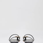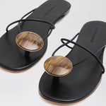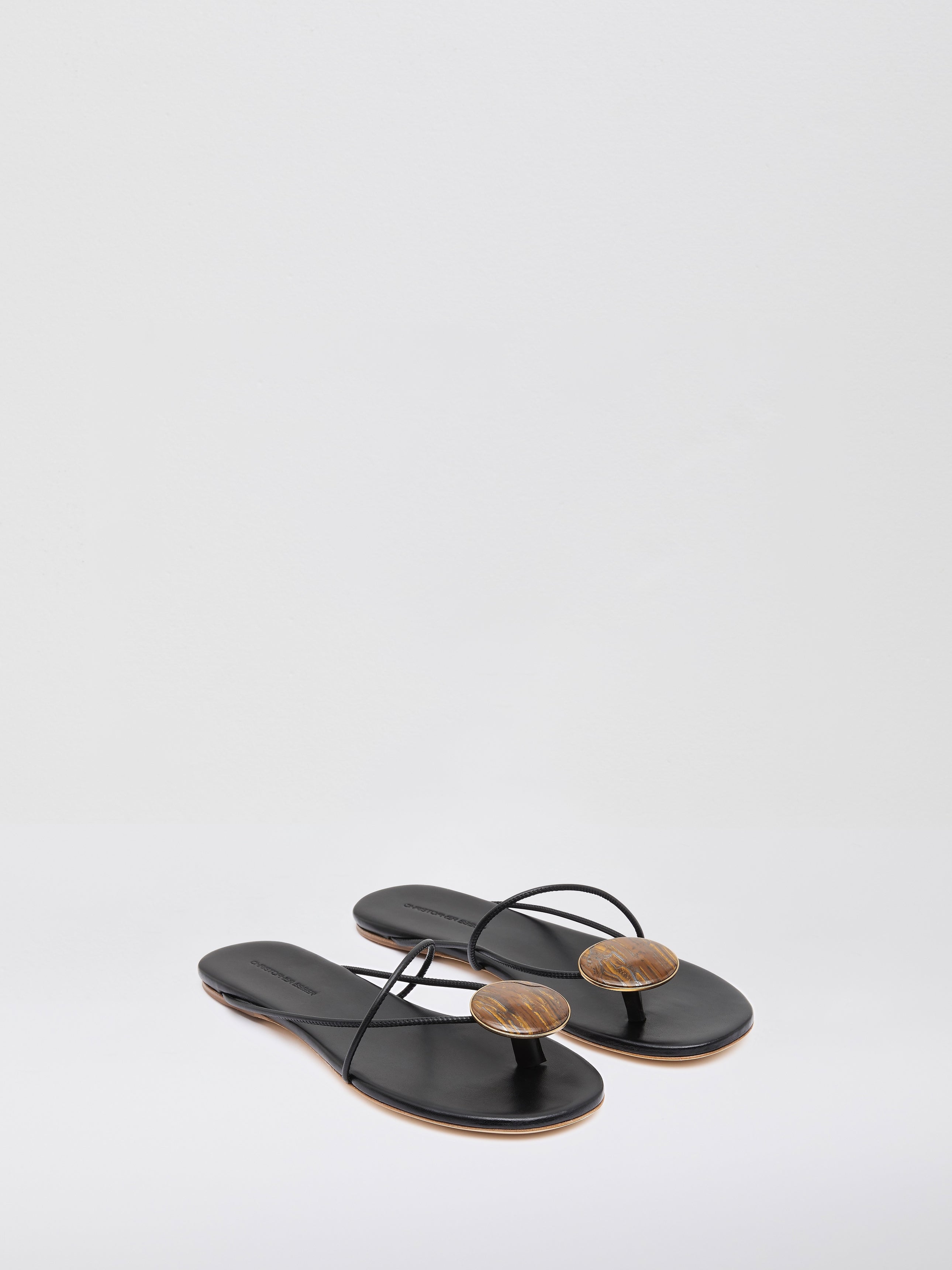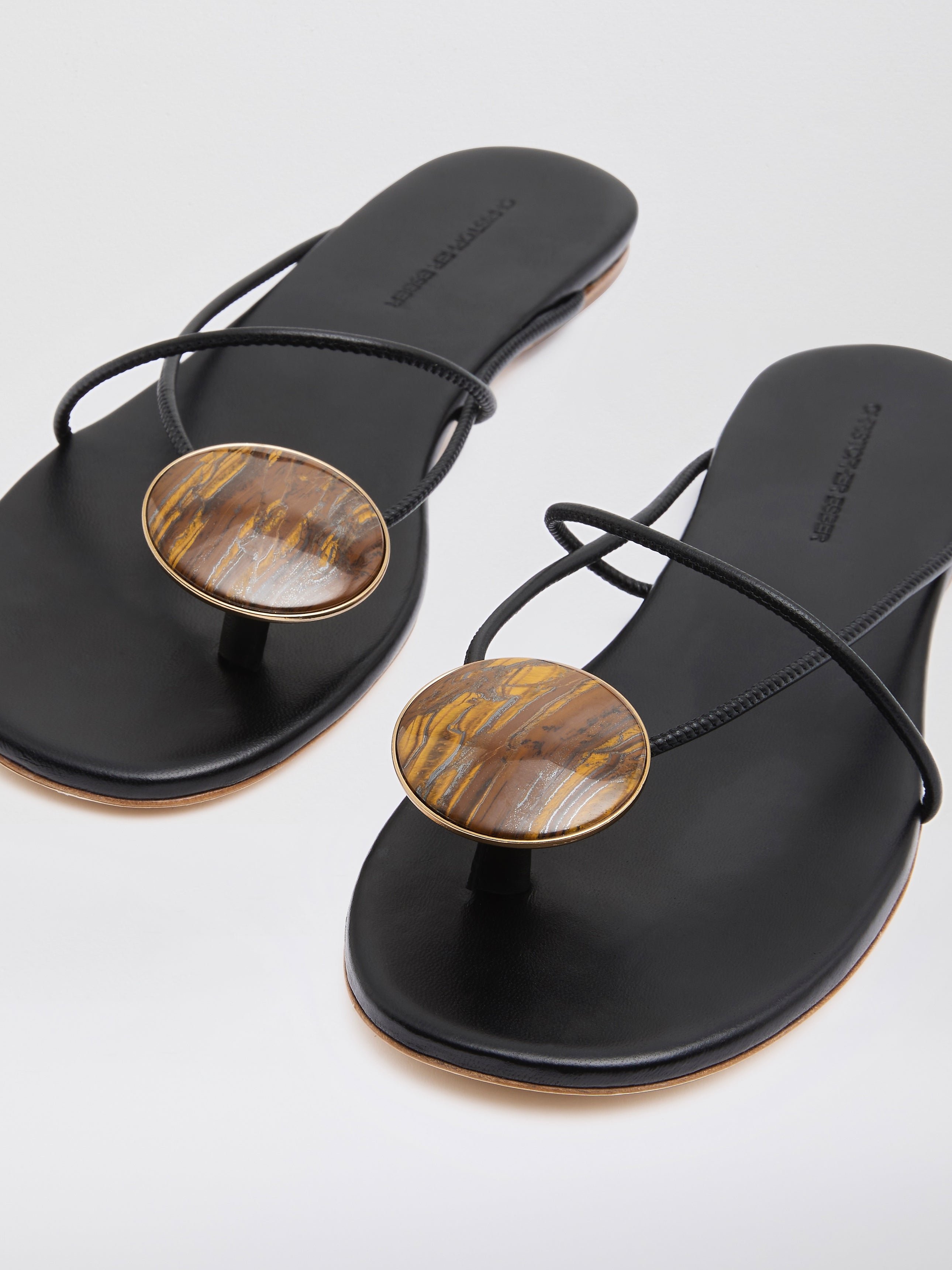 A minimalist tonal flat that slips on with ease. Crafted with a soft leather lining, these slip on flats are anchored by a Tigers Eye hardware to enhance strength and protection. Featuring intricate multi straps finished by hand.