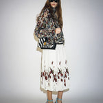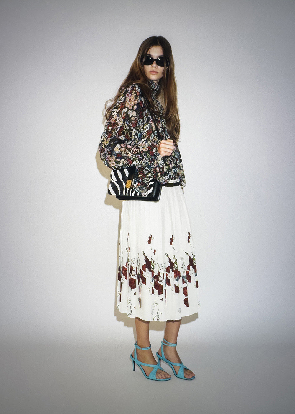 Fusing ‘90s grunge with a bohemian spirit, this fluidly formed shirt is framed by a high stand collar for a regal bearing. Cutaway silhouette animated by hand-crushed cartridge pleating, with billowing sleeves cinched at the wrist. Wear with slit neckline at front or back.