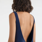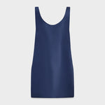 A sleeveless mini dress with a sheath silhouette, scoop neckline, and low open back. Cut from crisp Italian silk gazar, double-layer throughout, with a smooth and lustrous finish.