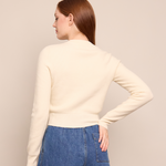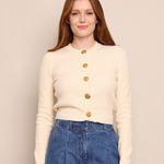 • Crewneck fitted long-sleeve cardigan with novelty gold floral buttons