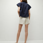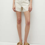 Now in summery ecru, the Ellis might be the perfect jean short. This mid-length, high-rise style is finished with a raw hem, button fly, and classic five-pocket styling. Made from 100% cotton, rigid denim gives them a vintage feel, while a versatile wash gives them staying power. Wear every day, with anything.