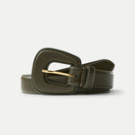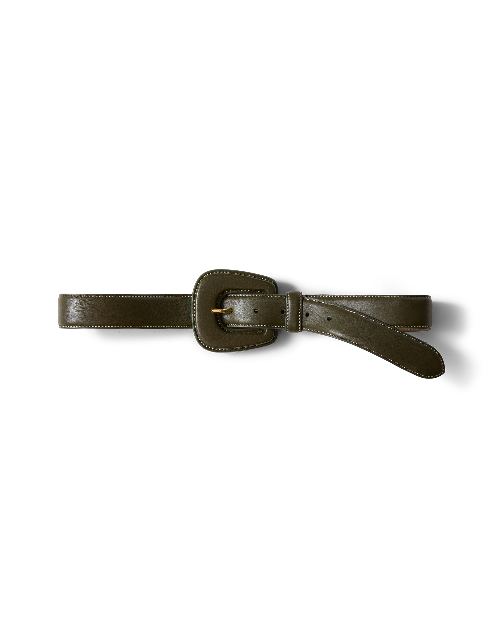 A modern take on the classic leather belt. Crafted from smooth, fine-grained leather and lined in soft nubuck, the Elsy features a sculptural, leather-covered buckle for a refined look. Contrast topstitching and a gold-toned prong adds understated detail. Style it with a tonal tailored trouser for a chic, minimalist look.