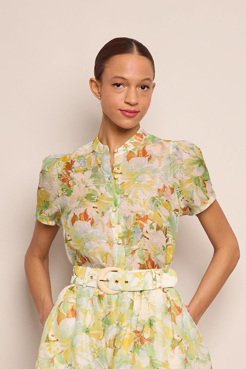 • Short sleeves with shirring detail at shoulder