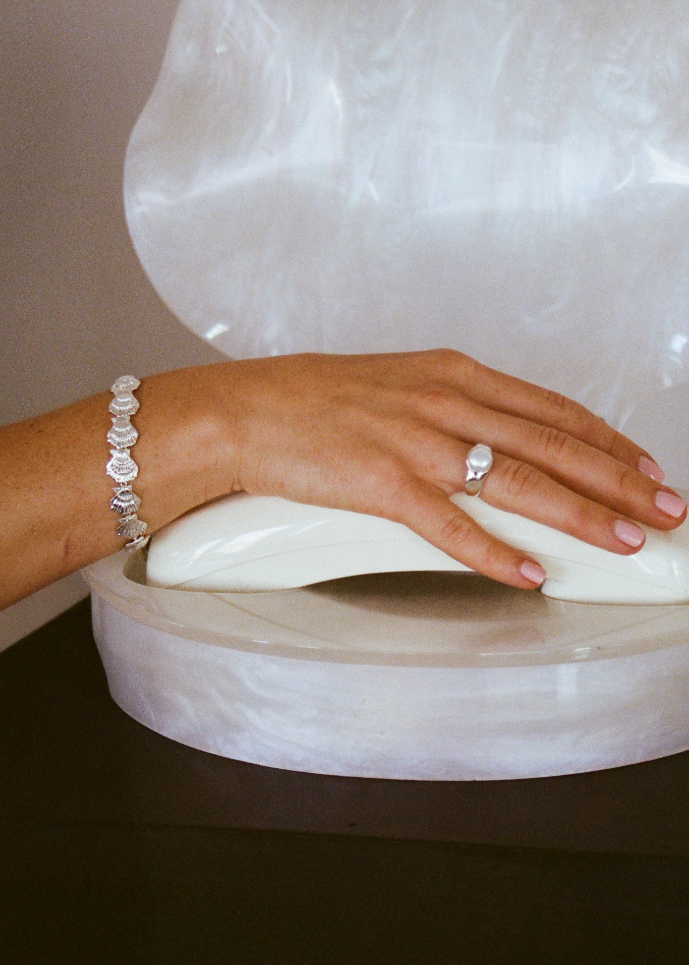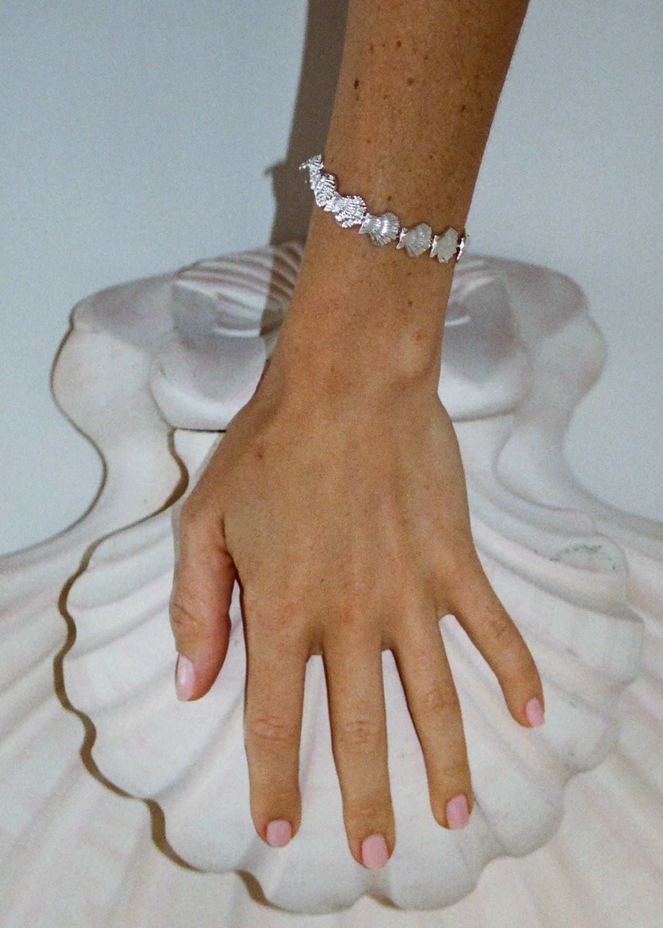 A sterling silver strand of memories from the sea. Our seashell eternity bracelet blends the timeless quality of fine jewelry with organic, ocean-worn beauty. Holding special memories of life and leisure on the shore to become a personal treasure in your collection. Style with other bracelets that tell your unique story, or pair with our matching earrings for a refined aesthetic.