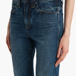 Inspired by '90s photographs of off-duty supermodels, this straight-leg silhouette brings a new ease to rigid denim. The mid-rise cut is designed to sit just below the navel, with squared and slim lines. Each hand-finished pair has a button of antiqued nickel.