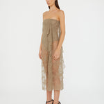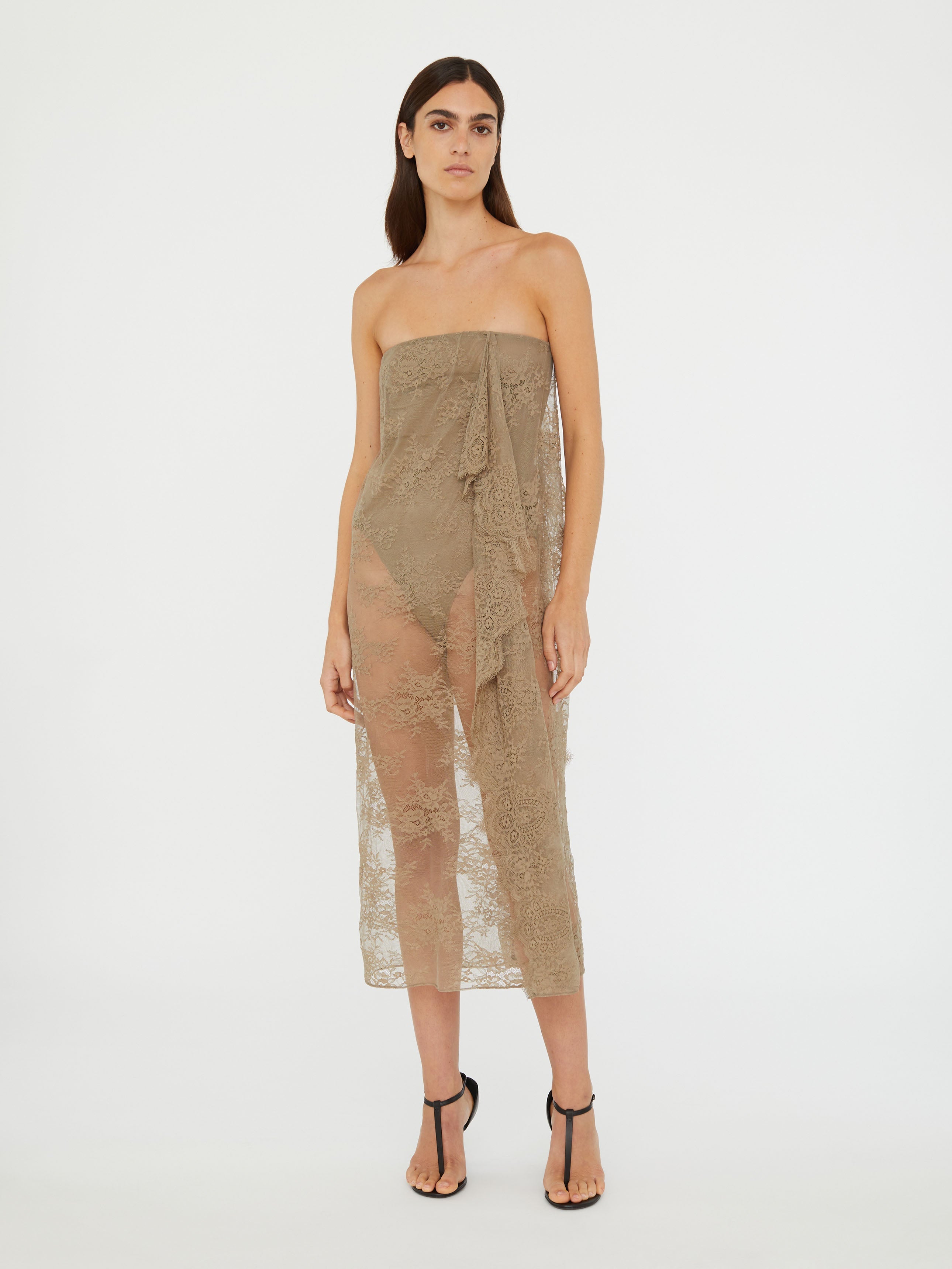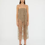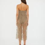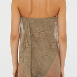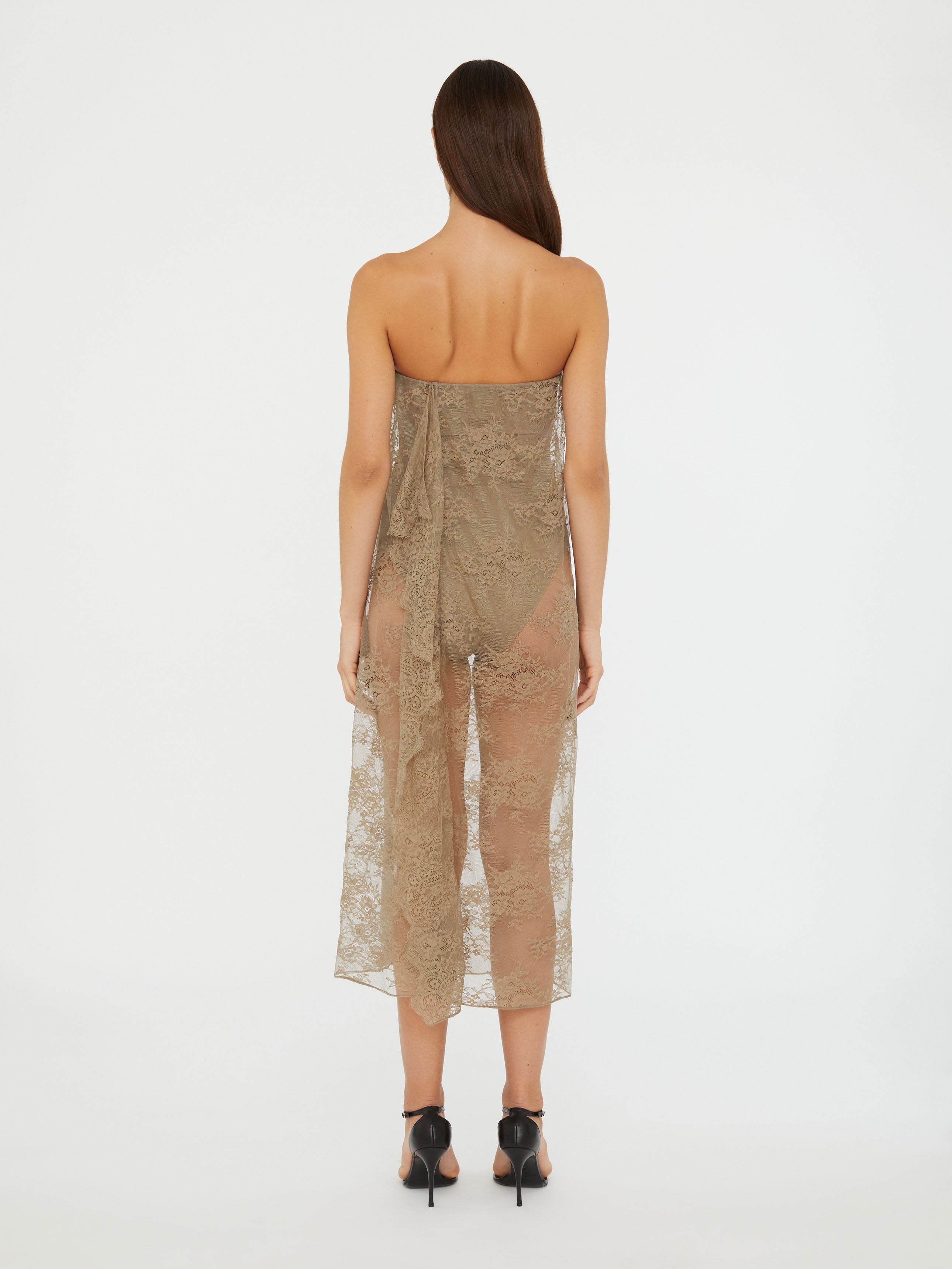 Composed of floral and embroidered cotton lace panels that appear to float away from the body, layered over a soft jersey bodysuit.