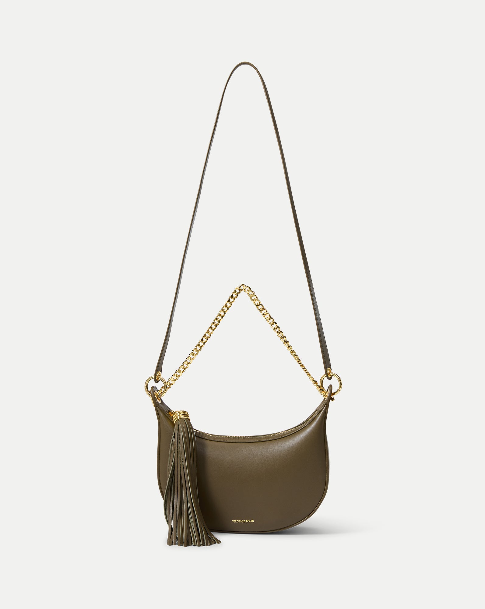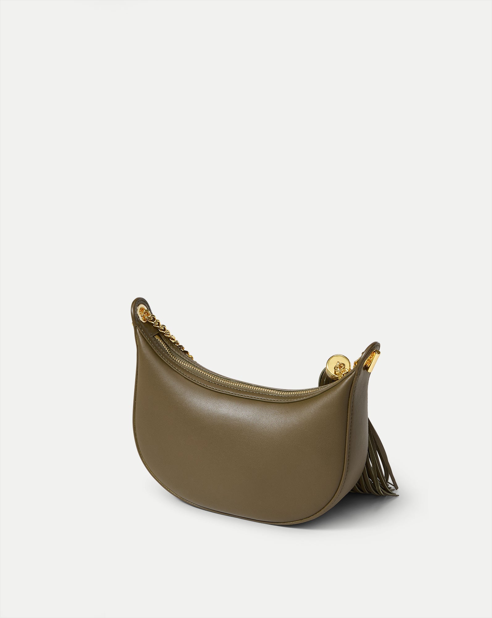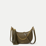 A chic little shoulder bag with day-to-night versatility. The Fortune bag features a softly curved silhouette—compact yet roomy enough for your phone and essentials—defined by a chain-link strap and oversized tassel zipper pull for a modern bohemian edge. It’s crafted from smooth, fine-grained leather with a polished finish and lined in suede for a luxe feel. Finished with a removable, adjustable crossbody strap for ease, it's the perfect bag to take you from desk to dinner.