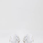 Adorned with glass embellishments that appear as colliding clusters. This sheer slip on flat is crafted in Italy of airy mesh traced by a graphic soft calfskin trim.