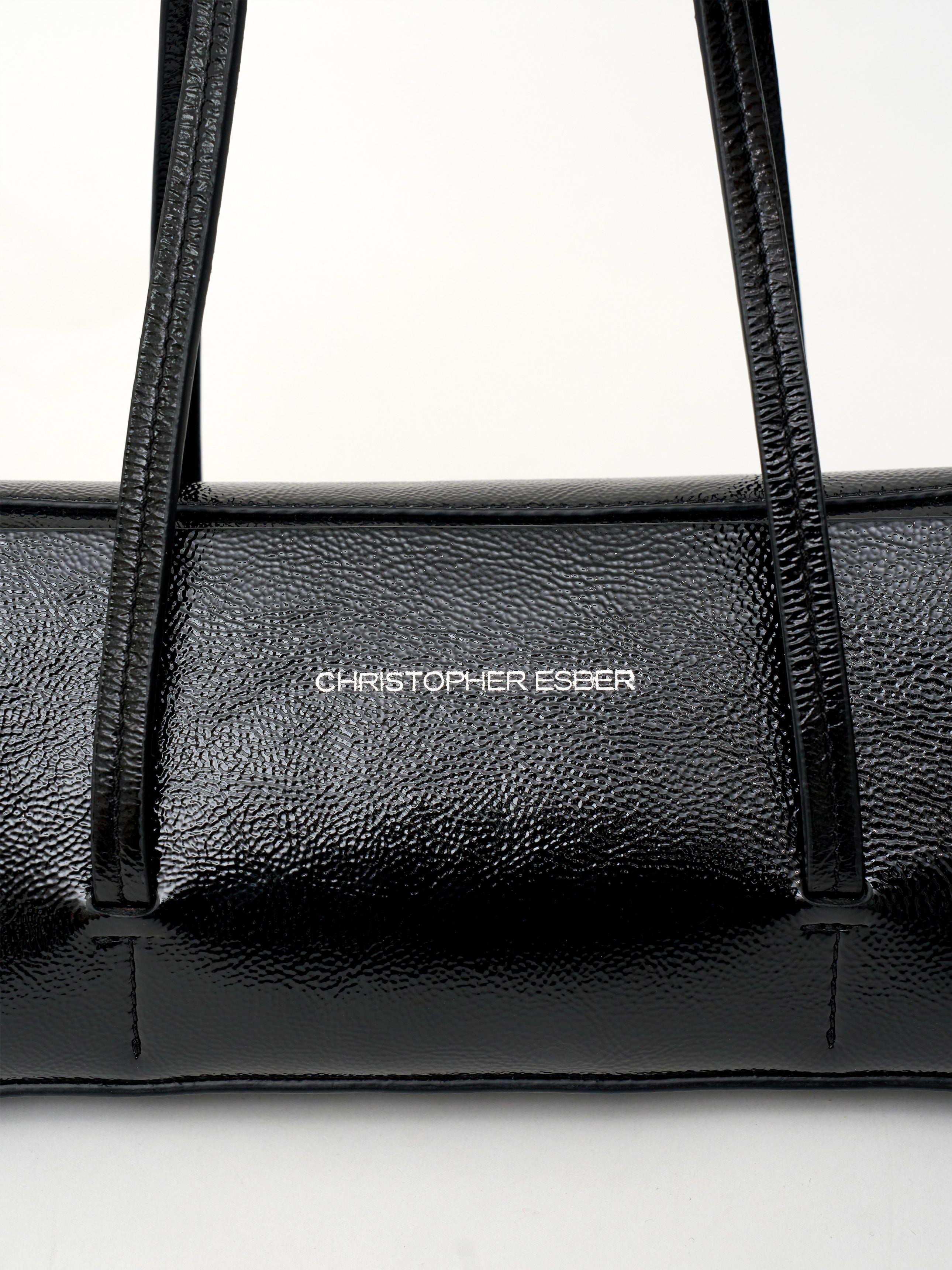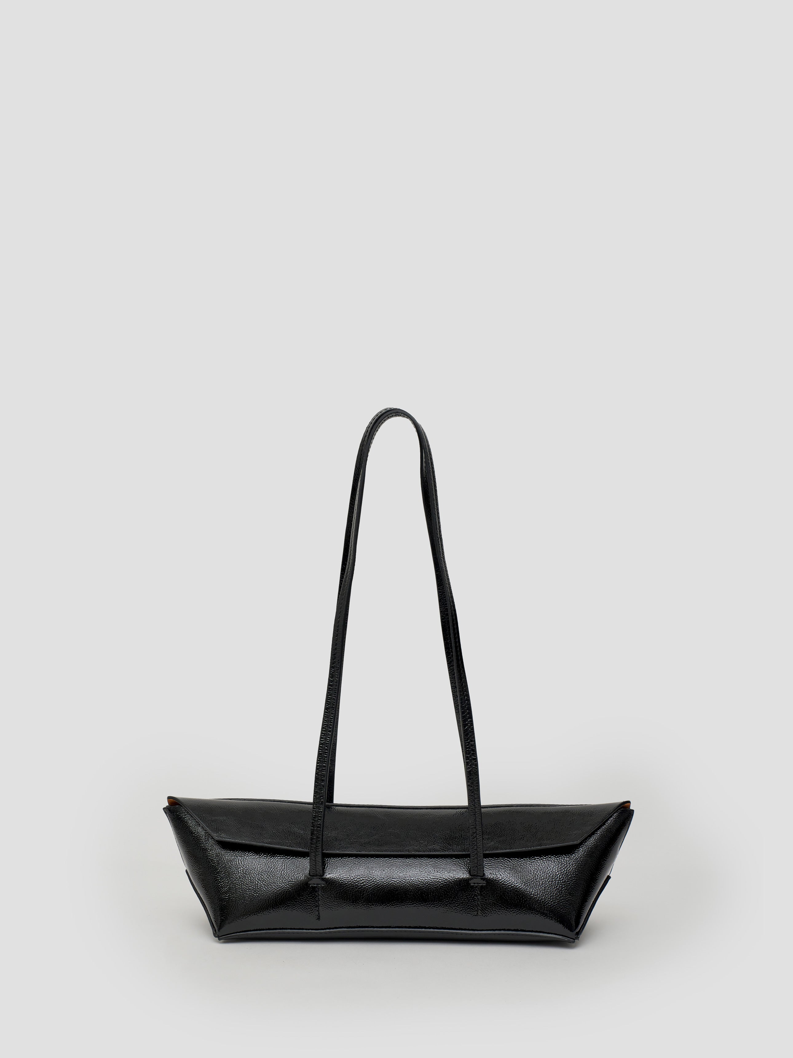 Form and function combines with this mini leaf tote bag. Designed with sculptural folds and peaks, its minimal flap opening can be tucked in to reveal an embossed custom logo.
