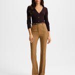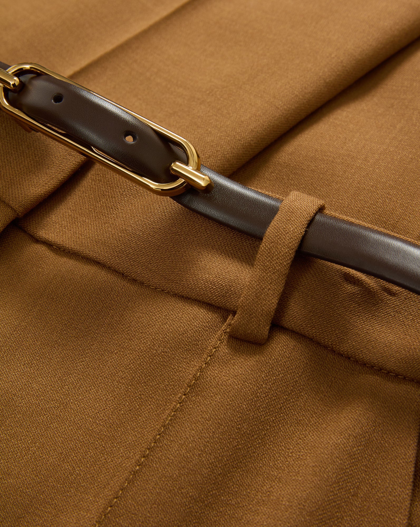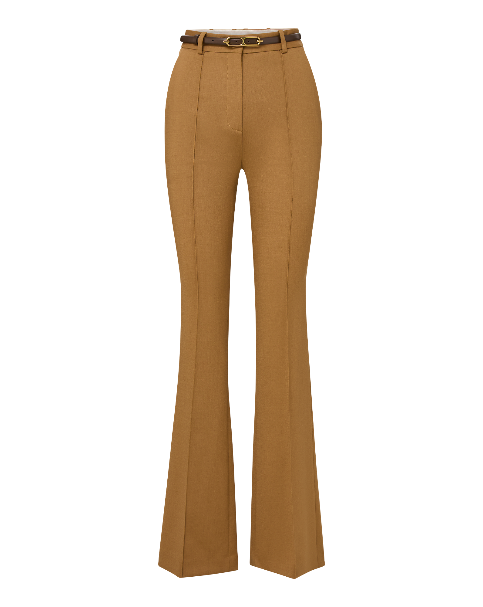 Our leg-lengthening pant. Crafted from an Italian stretch-wool blend, the high-waisted Gracie pant is defined by a slim leg that falls to a slight flare above the knee and comes with a removable skinny belt for easy styling. For a chic, polished look, pair with a silky blouse or slim sweater and finish with heels.
