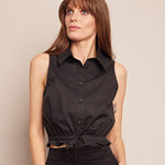 • Collared button down halter top