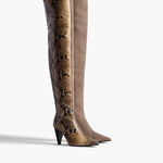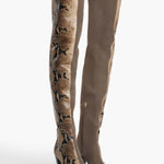 Khaite - Harvey Over - the - Knee High Boot in Morning Dove Suede and Taupe Python - Embossed Leather