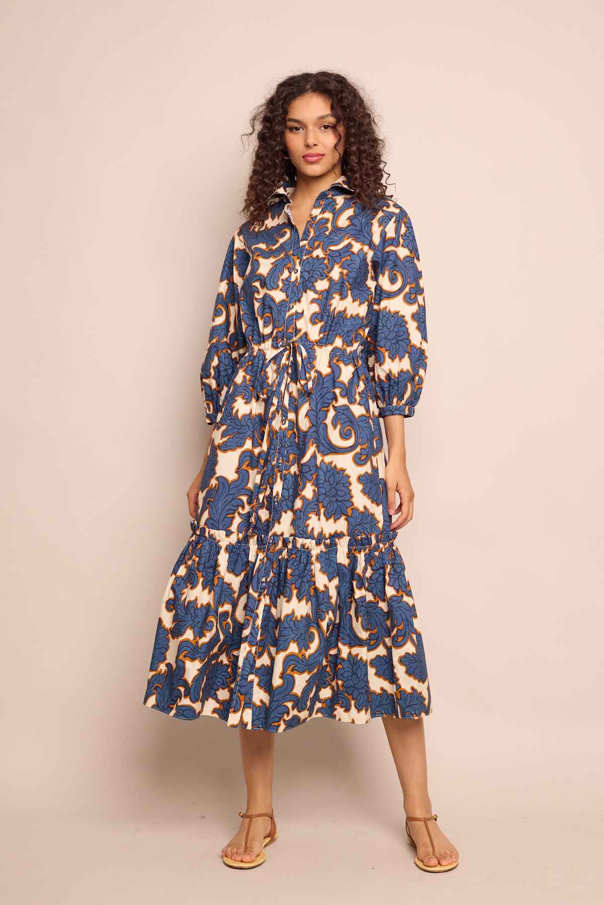 We took our best selling Hutton Top and designed it into the most effortless, all-season, cotton piece. Featuring a shirt dress silhouette with self-tie cinch waist and ruffle tier skirt. Team with statement jewels and heels or a chunky knit and sneakers for maximum versatility.