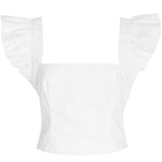 The Hyannis top is designed from crisp cotton-poplin with a square neckline and ruffled trim at the straps adding a flirty touch to this versatile piece.
