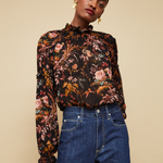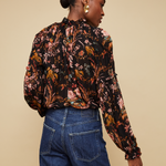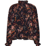 • Ruffled neckline and shirred voluminous sleeves with elastic at bicep