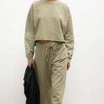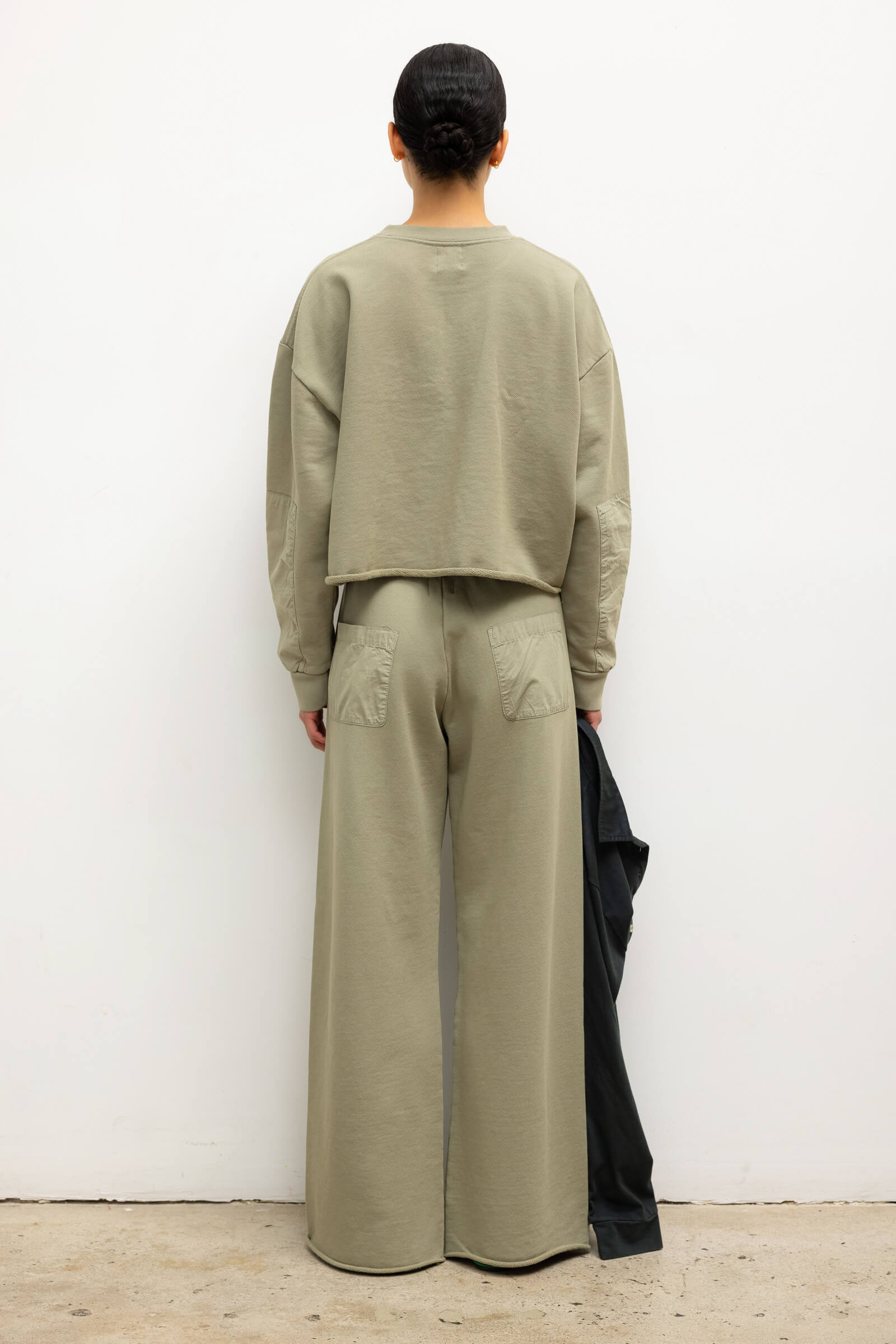 Cut in our new garment dyed Jamie Cotton Terry, The Jamie Wide Leg Pant is a pull-on style pant, featuring an adjustable drawstring waistband and rolled hemlines. Make it a matching set with The Jamie Patch Crew.