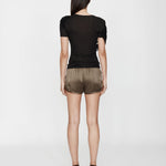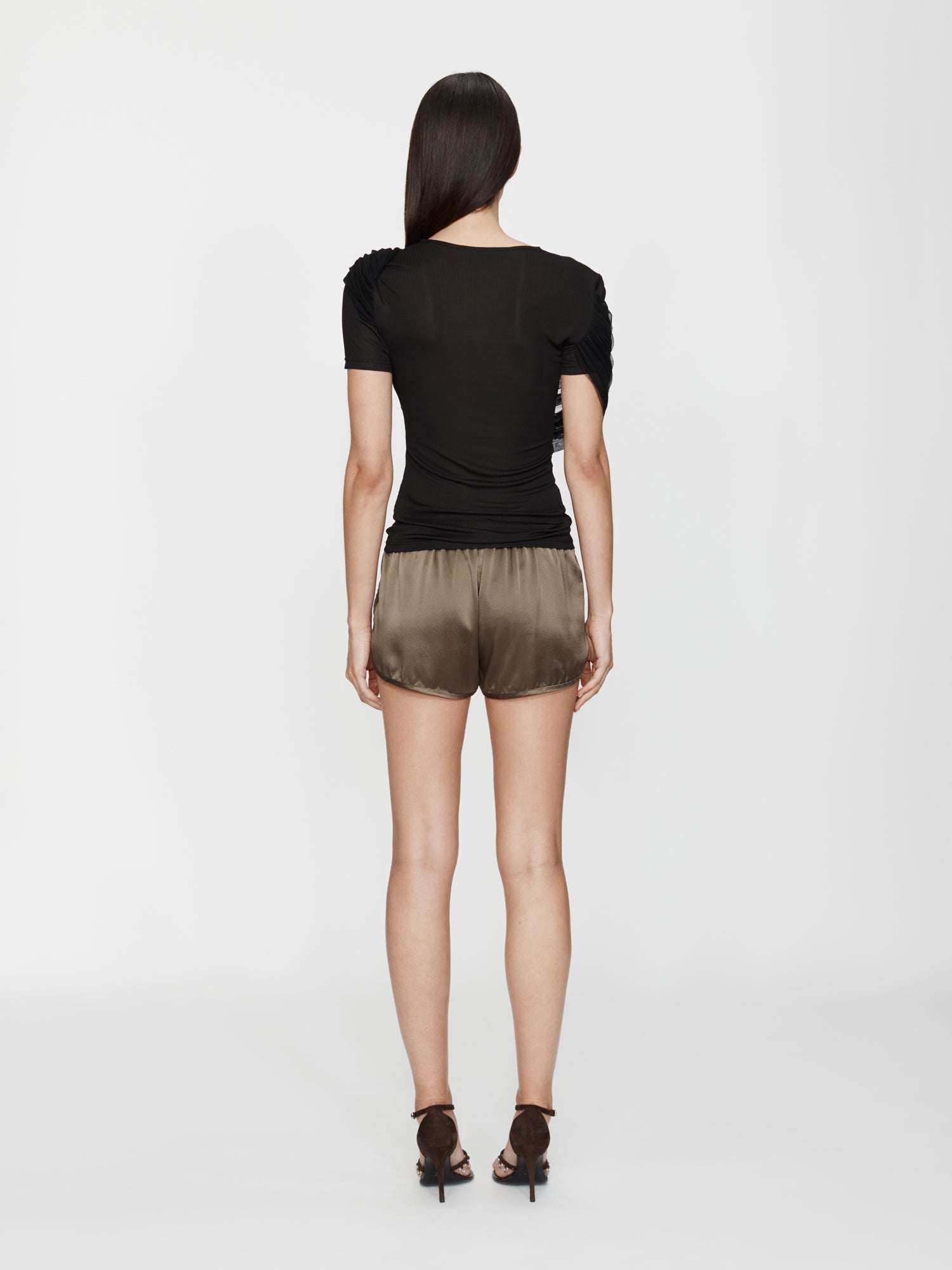 Casual codes are redefined in a lustrous silk satin boxer short. Cut with a wide, mini silhouette and elasticated waistline, the pull-on style is finished with a clean edge that traces the hem.