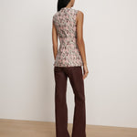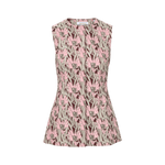 A tailored vest with a sleek, streamlined look. The jewel-neck Jessup is fitted at the waist and gently flares at the hem, finished with a hidden button placket for a clean silhouette. Crafted from a premium tailoring blend, it’s patterned in burgundy and pink florals with subtle metallic threading throughout. Pair with the coordinating Arte pant for a chic matching set, or dress it down with white denim.