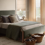Sink into the coziest moments of your day with this moody accent pillow, woven in calming, tranquil shades of mist and Aegean blue. A seamless pairing for almost any aesthetic, this lived-in pillow features a striped design created from small dashes.