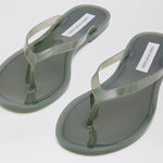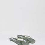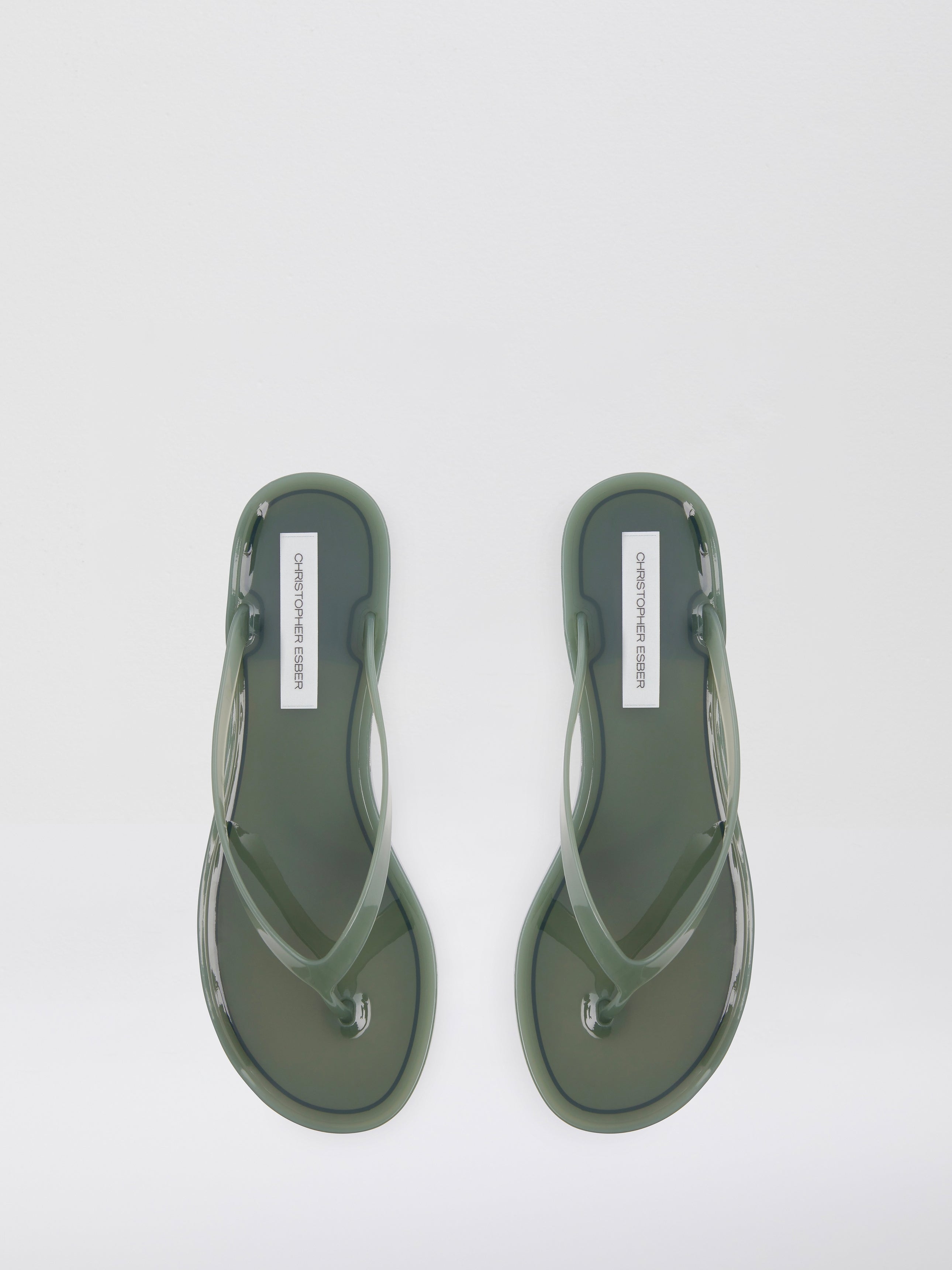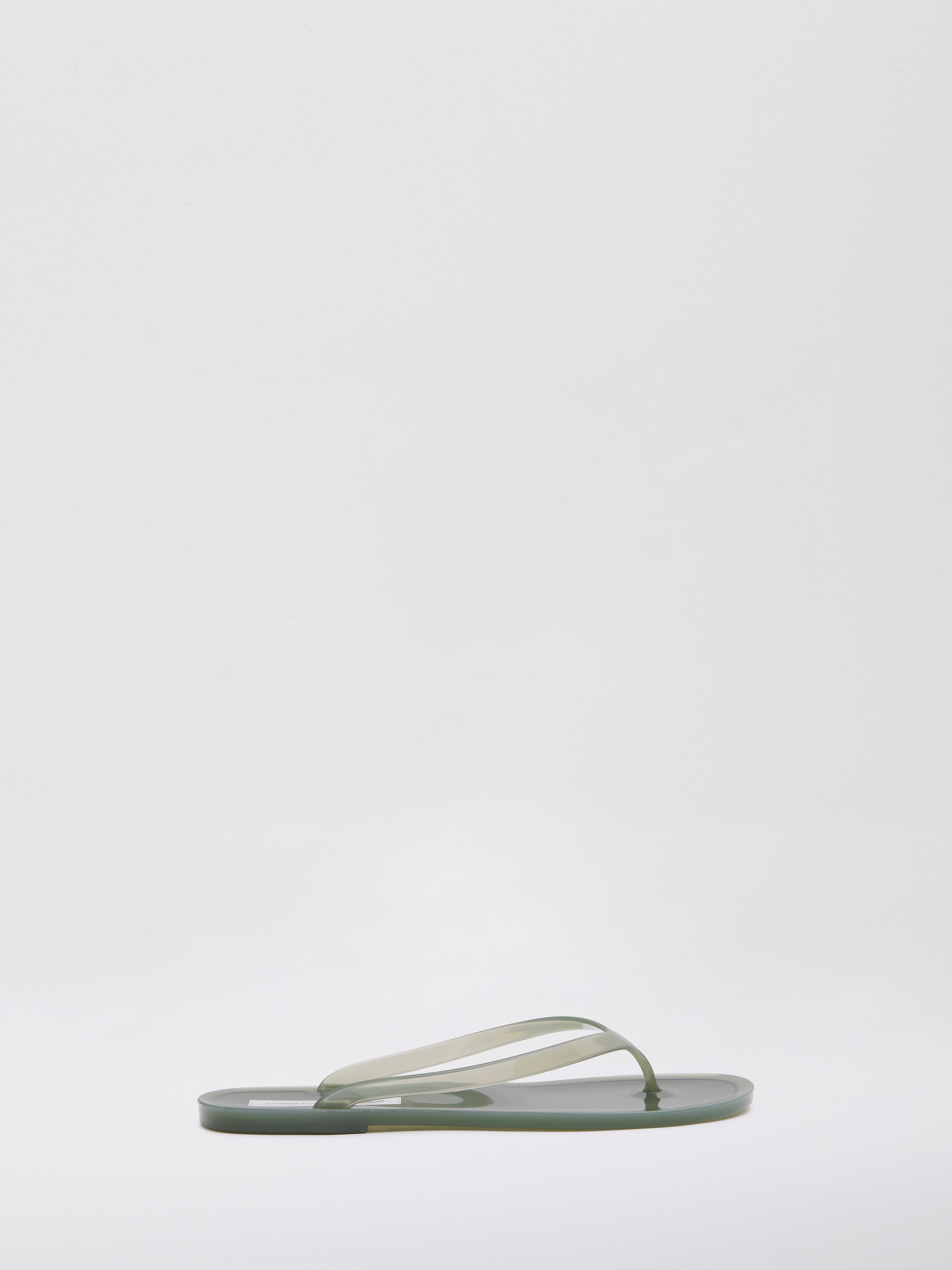 A minimalist tonal flip flop that slips on with ease. Hand crafted in Italy made in a semi- transparent, jelly-like 100% PVC.