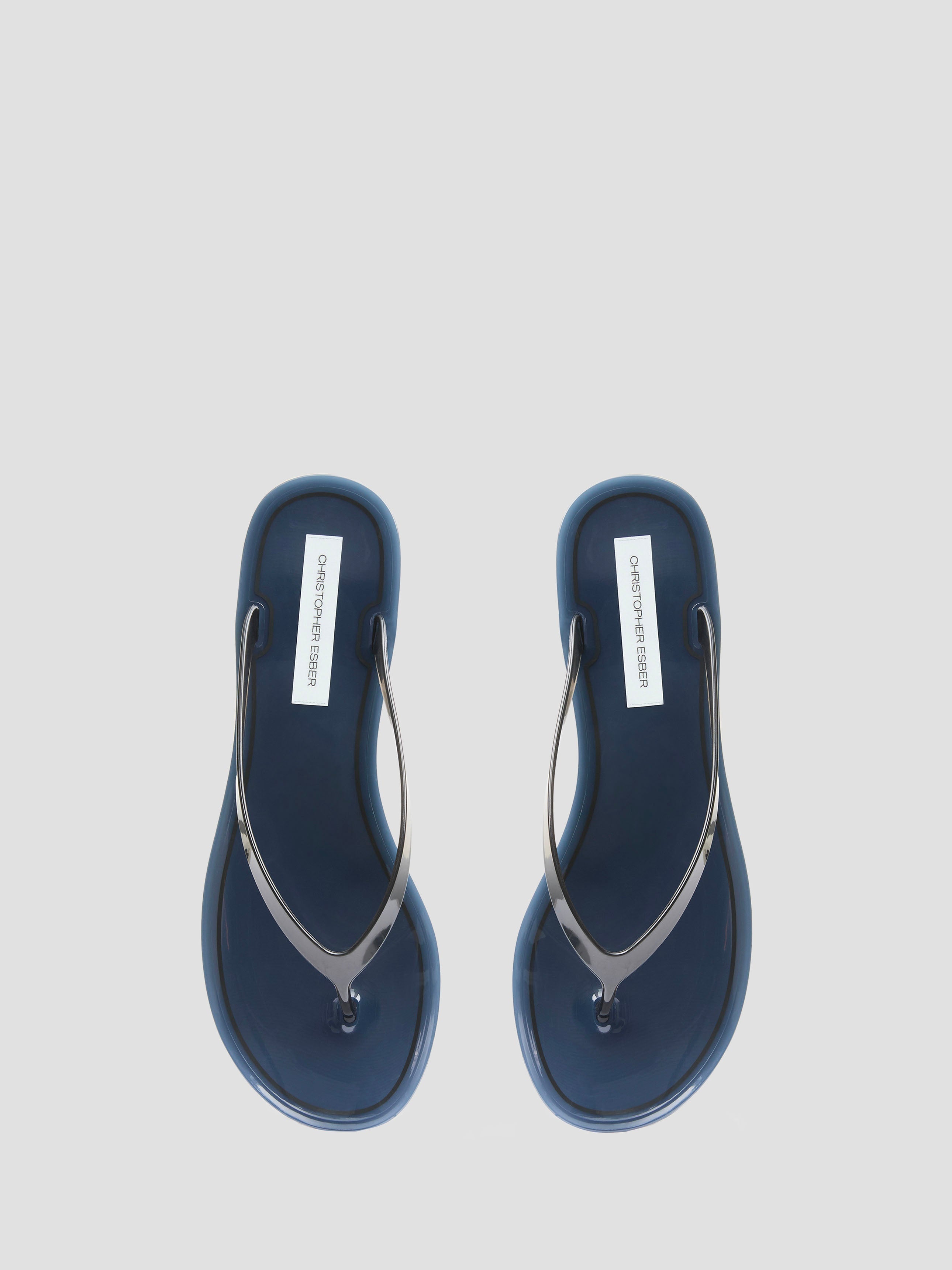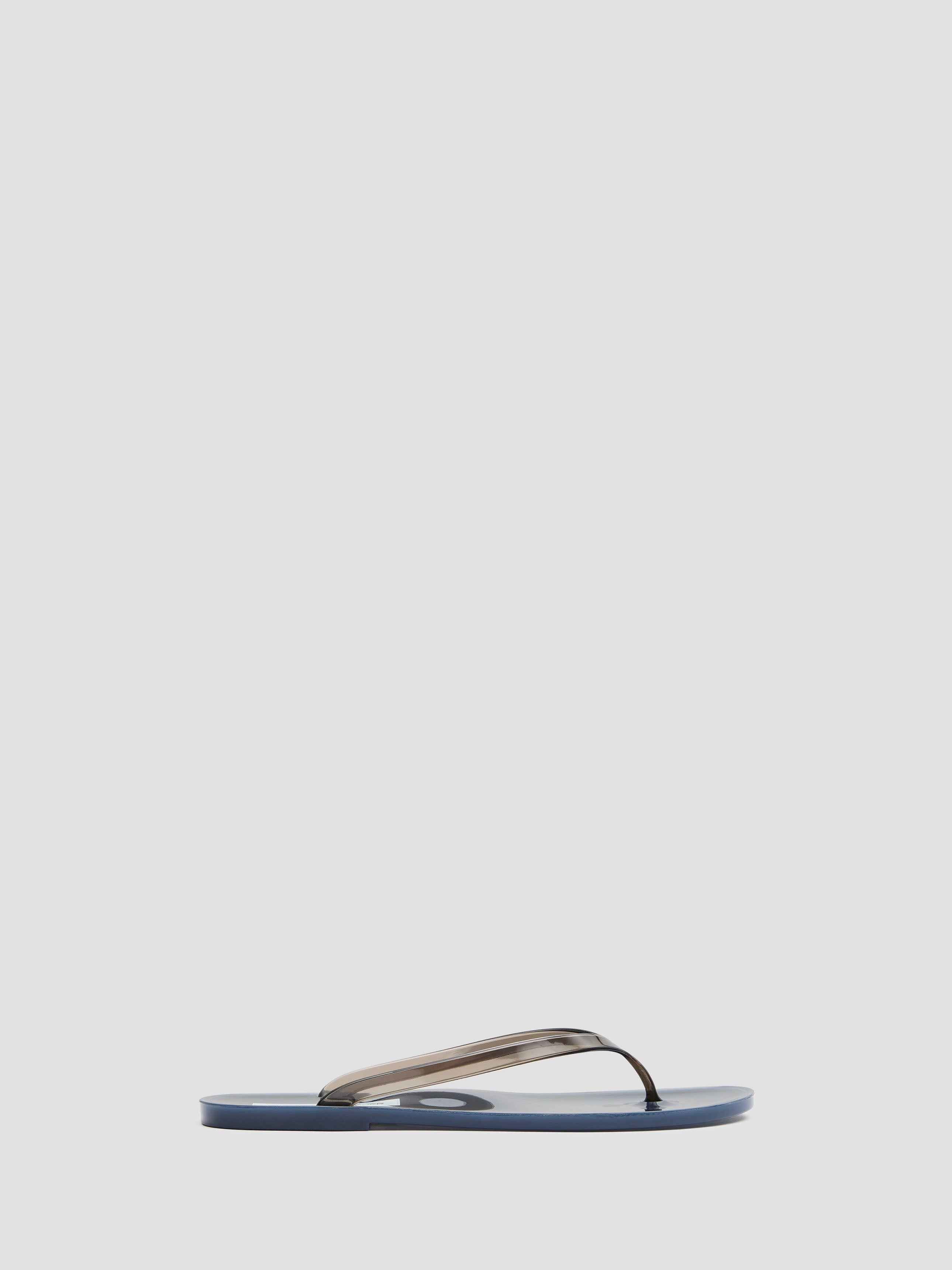 A minimalist tonal flip flop that slips on with ease. Hand crafted in Italy made in a semi- transparent, jelly-like 100% PVC.