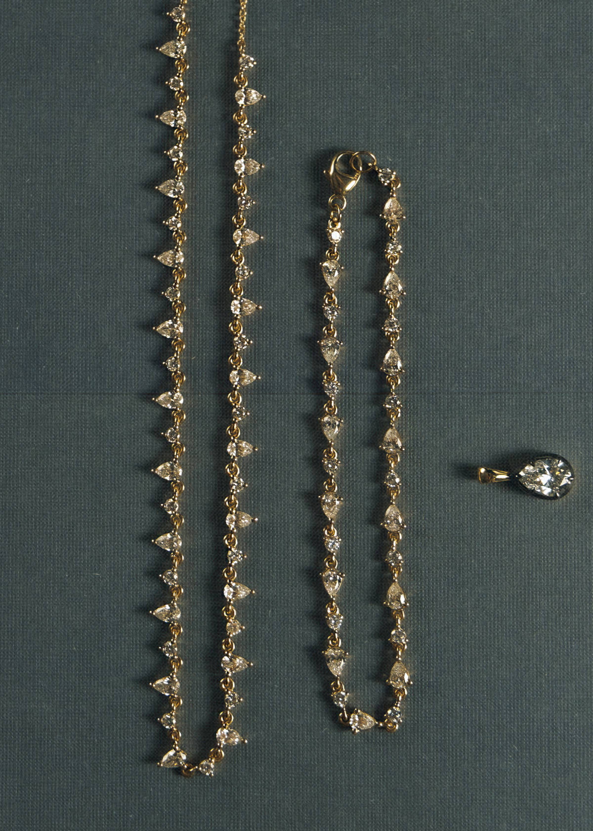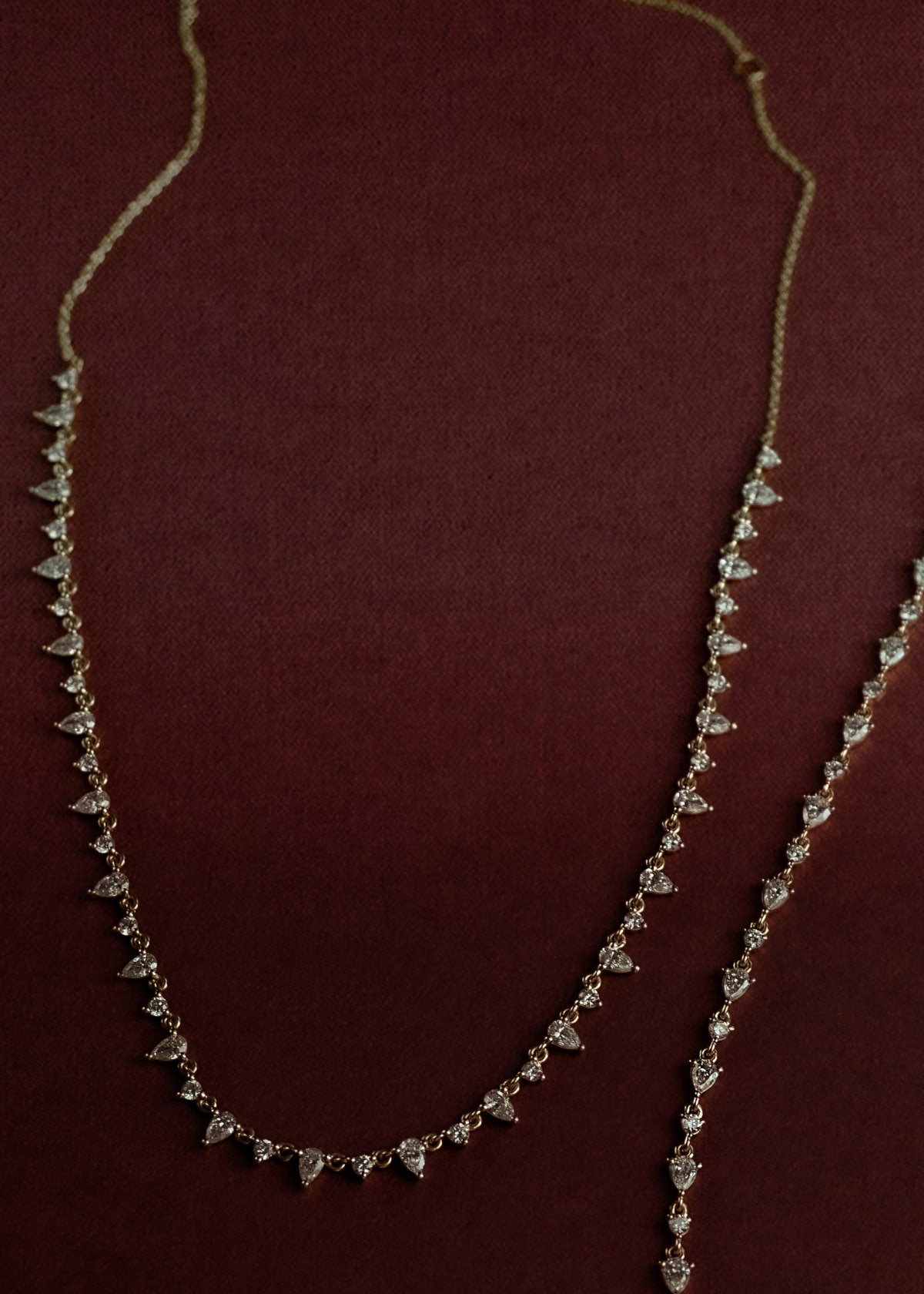 A diamond necklace that speaks to love and legacy. Alternating pear and round diamonds sit along a 14k solid gold rolo chain. The kind of necklace you treasure today and pass down for generations. Layer with others or wear alone.