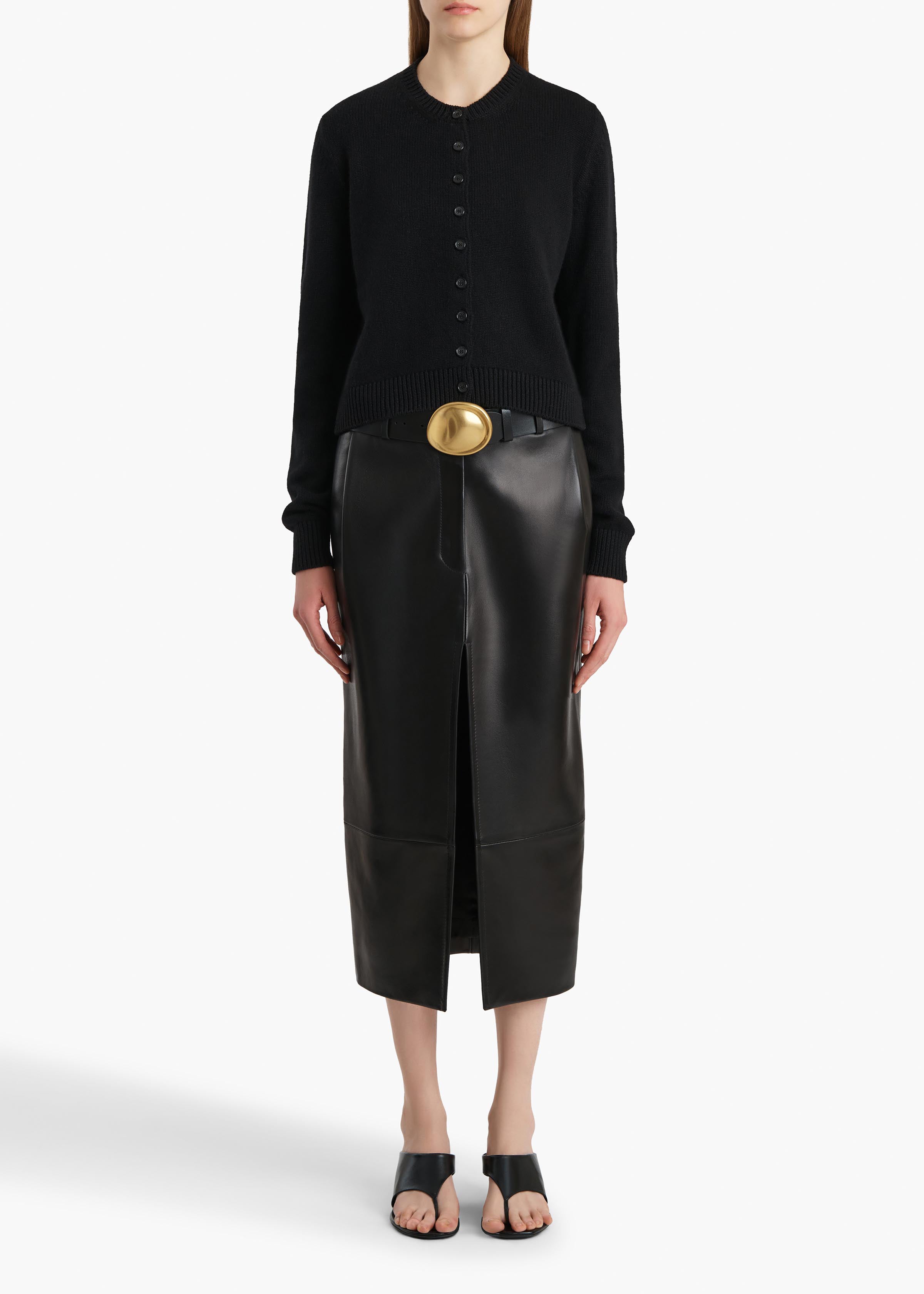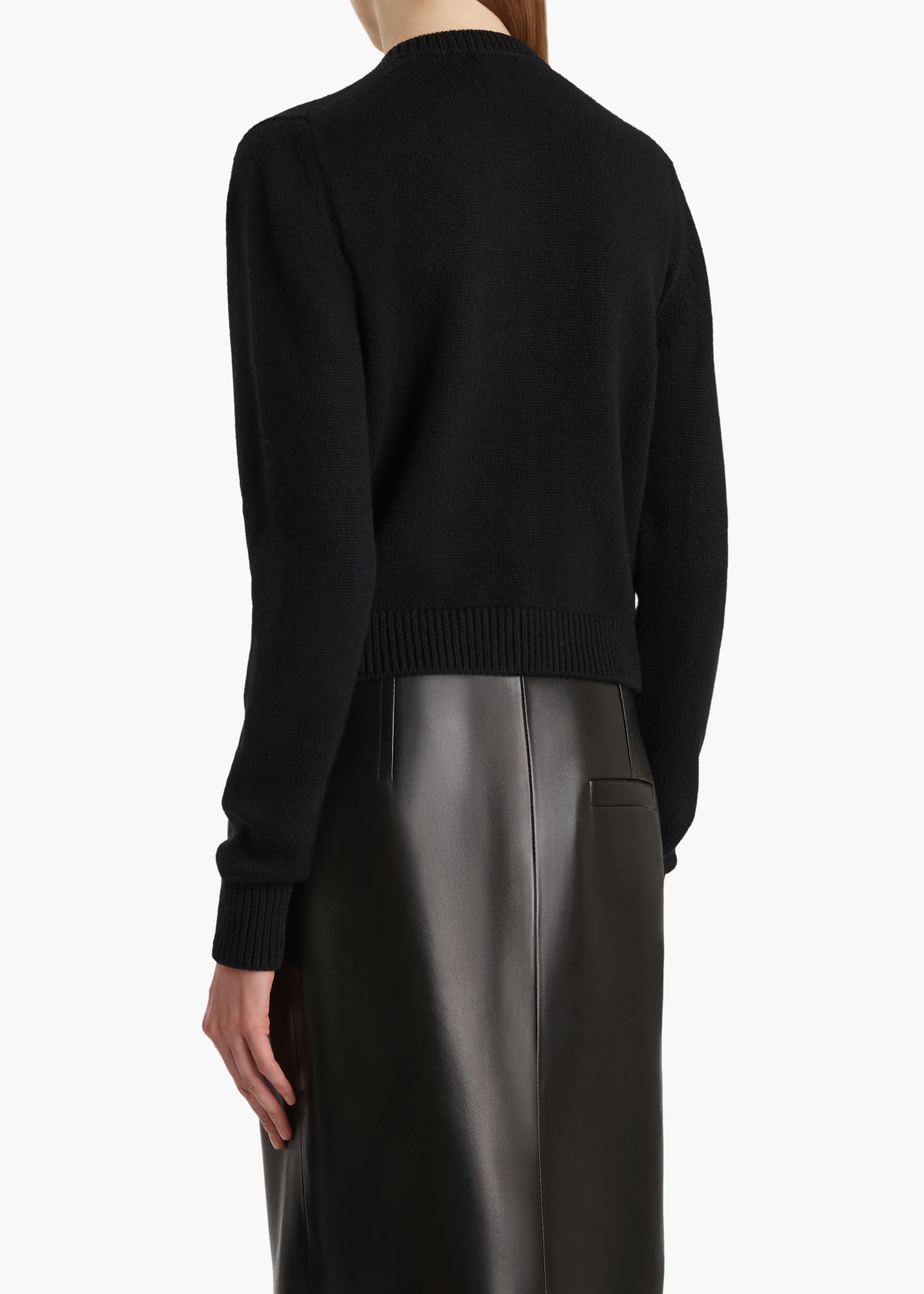 A collectible cardigan in dense and luscious cashmere that has become a KHAITE signature. The jersey-stitched body is refined by classic 1x1 ribbing at the crewneck, hem, and cuffs. With black buttons at the placket.
