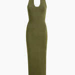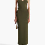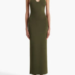 A knit dress of clean lines and exacting details. Made in Italy of compact milano-stitched viscose selected for its balance of structure, softness, and subtle sheen. The u-neck, halter-style silhouette is designed to frame the shoulders with decisive lines. Slips on.