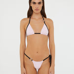 Fine contrast straps lend graphic tension to this minimal bikini bottom. Sculpted Lacuna hardware anchor adjustable side ties.