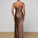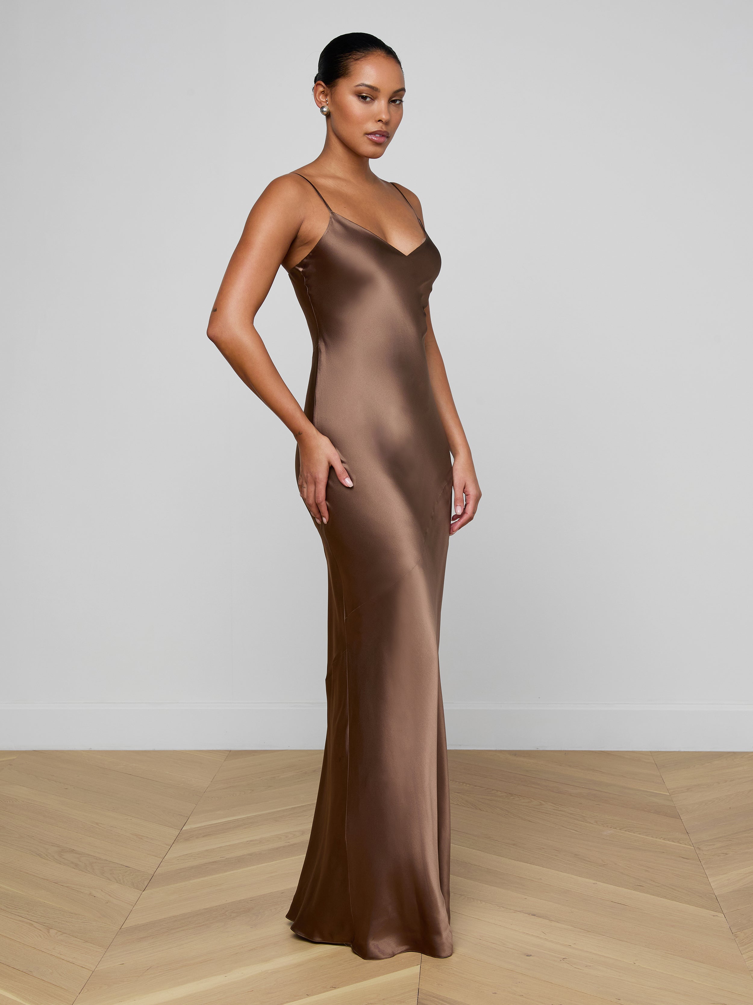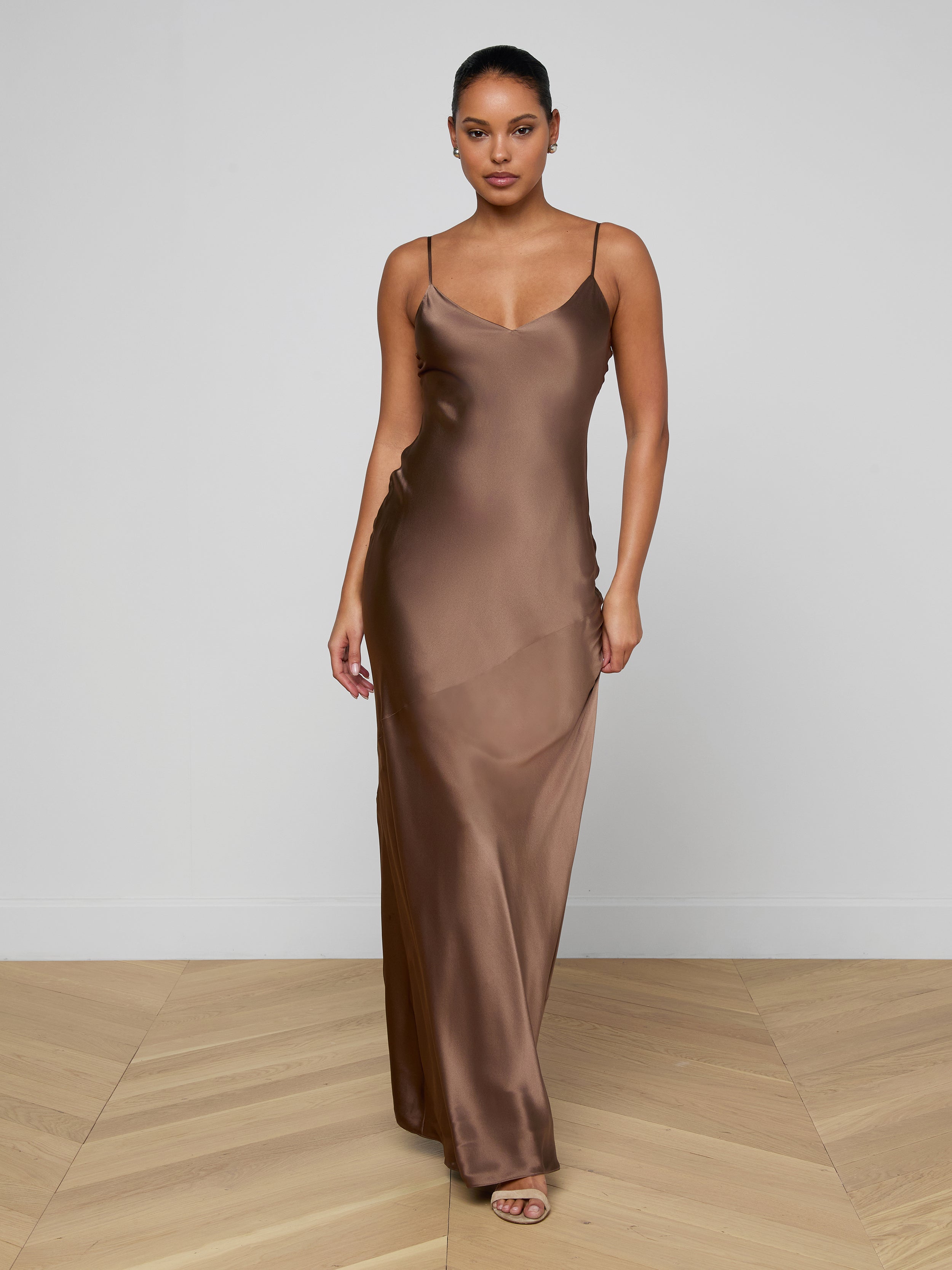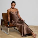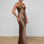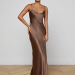 All understated glamour, our signature silk slip gown is back in rich brown. The Serita dress is an all-time L’AGENCE bestseller and perfect for every event. Pair it with heel and drape a blazer over your shoulders for the ultimate wedding guest look.